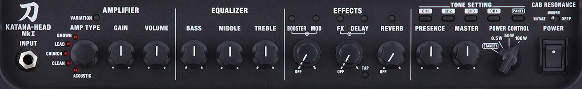 Katana MkII tar den anerkjente Katana gitarforsterkerserien til det neste nivået og fyller opp gunnplattformen med flere lyder, flere effekter og flere funksjoner. Nylig lanserte variasjoner er nå tilgjengelige for alle de fem forsterkertypene, noe som dobler de tonale mulighetene. De inkluderte effektkategoriene har blitt utvidet fra tre til fem, noe som gir enda mer real-time-prosessering å velge blant. Brukervennligheten har også blitt økt ytterligere, med en kraftig forsterkerinngang for «rett-i-bordet» multi-FX, enkel stereoutvidelse for dobbelt forsterkeroppsett, oppdatert redigeringssoftware og mange andre forbedringer.