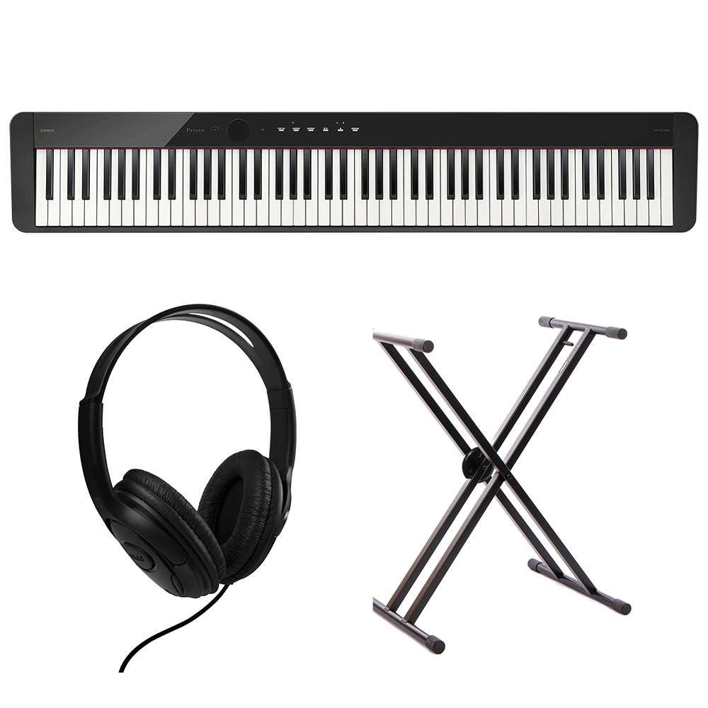For stabilitet og justerbarhet inkluderer pakken et keyboardstativ med dobbeltkryss.
