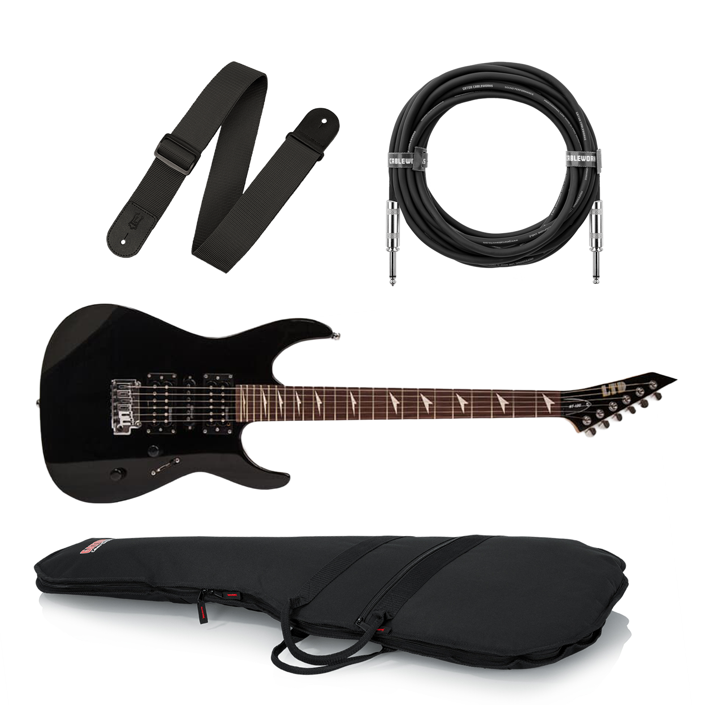 LTD MT-130 Black gitarpakke med gigbag, svart reim og 6 m instrumentkabel
