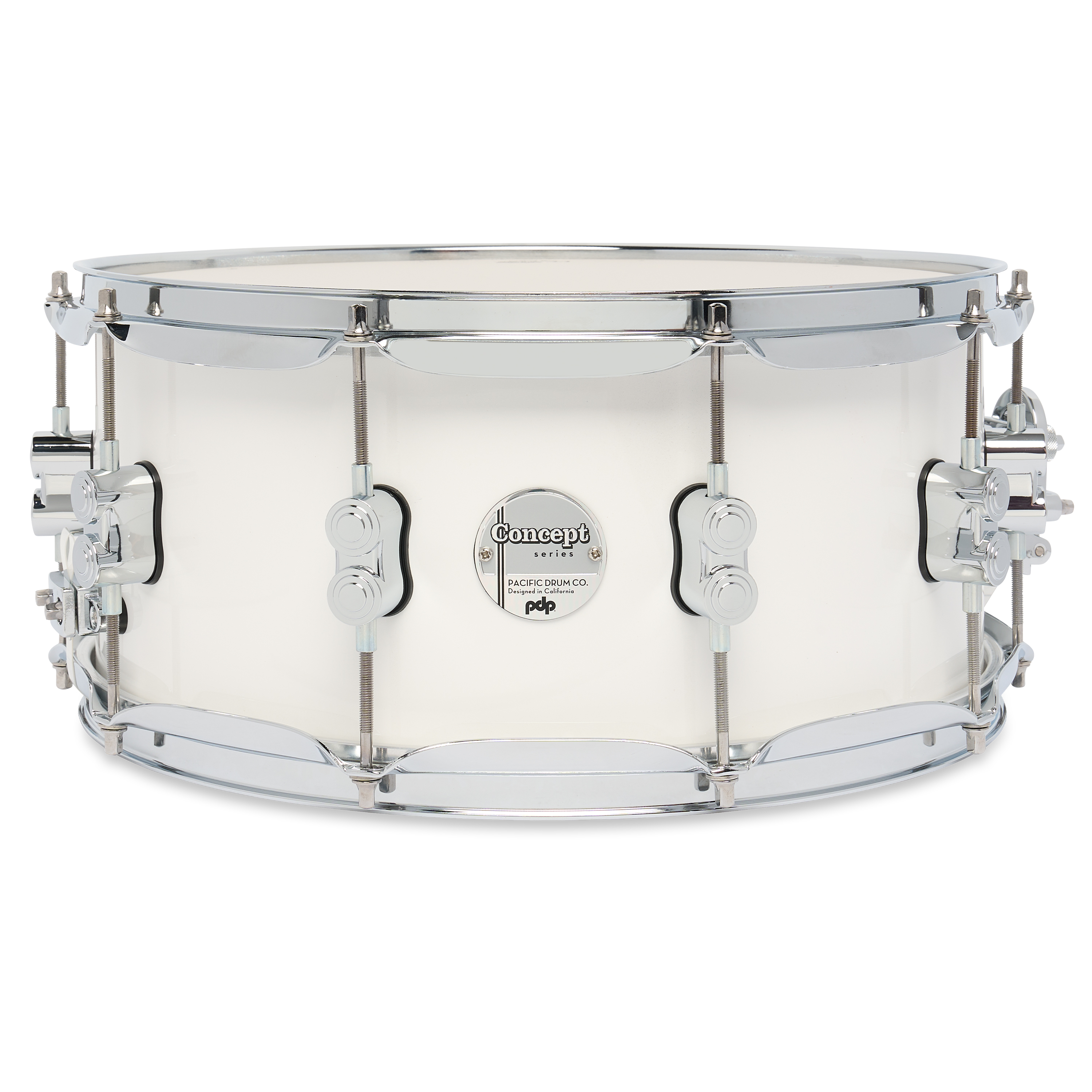 PDP Concept Maple Pearlescent White Lacquer 6.5x14 skarptromme med krom hardware
