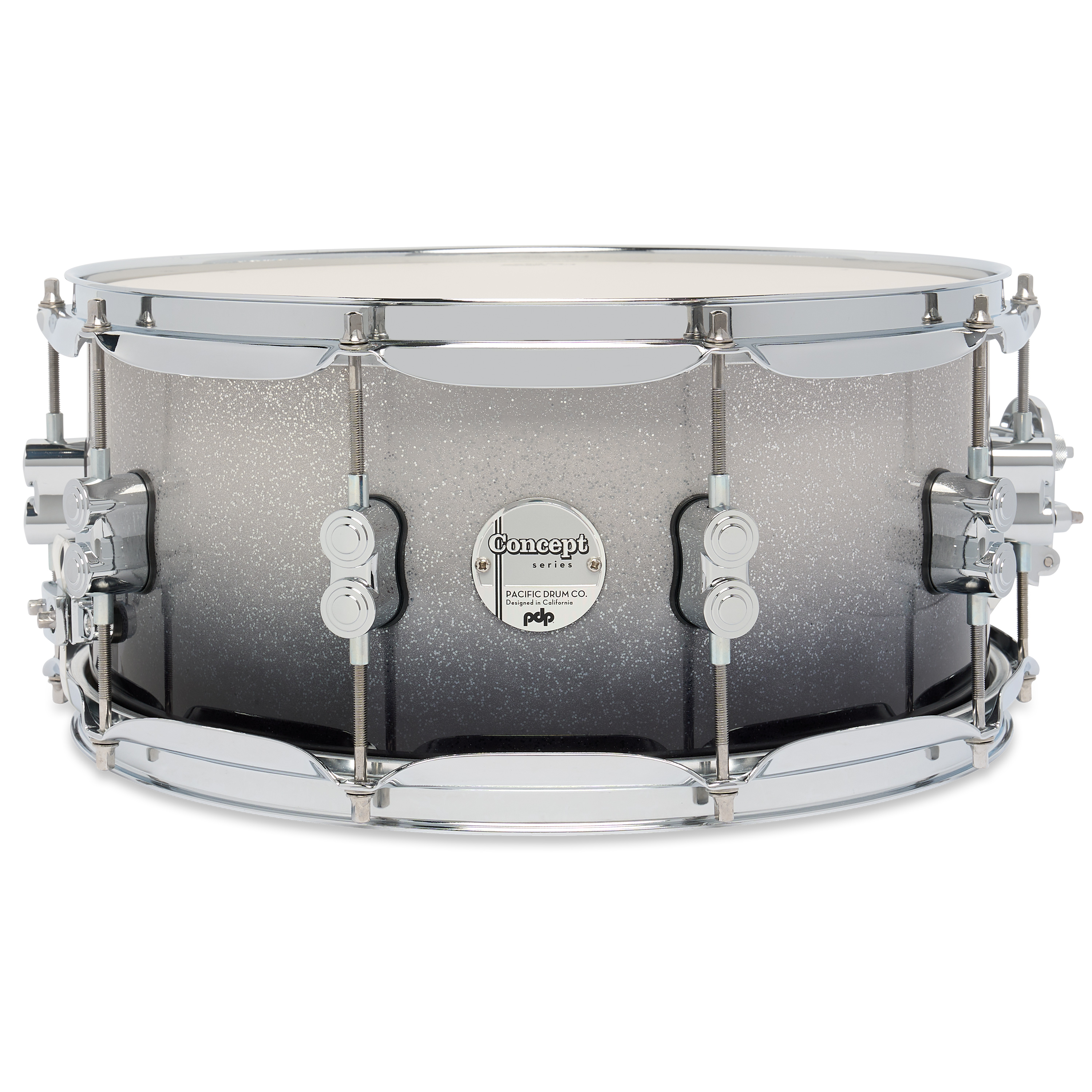PDP Concept Maple Silver to Black Fade Lacquer 6.5x14 skarptromme med krom hardware