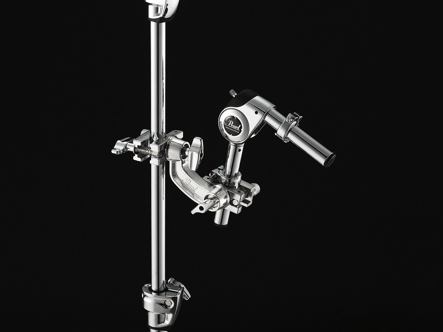 Pearl AX25 har to hurtigutløsningsklemmer for fleksibel justering og posisjonering. Juster fra side til side og opp og ned for fleksibel montering av tilbehør og ekstra trommer rundt trommesettet. Hver klemme utvider seg for å passe til stenger og rør med 12,7 mm til 28,6 mm diameter.