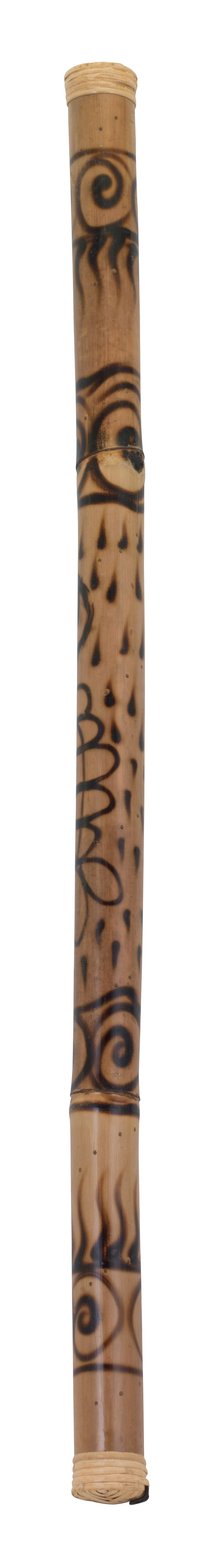 Pearl 48" natural Bamboo Rainsticks are 2.5" in diameter and feature a spiral maze of tines that a cascade of lava pebbles flow over to create the soothing sound of falling rain. Finished in a hand burned design the depicts the life cycle of water called Rhythm Water. •48" Bamboo Rainstick •Hand crafted special effect and ceremonial instrument •Impressive projection and sustain •Play like a large shaker
