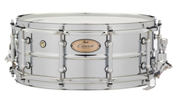 Since 2003, the CRP Concert Series Ply-Maple drums have been the economical choice of schools for having Professional level features and tone at a fraction of the cost. Now that same value added choice has a new brighter tonal option with addition of the CRS beaded steel shell drums. Steel is one of the brightest sounding and clear cutting materials for snare drums, and is the ideal choice for any ensemble for aspiring percussionist. All the professional grade features of the CRP drums are included on the new CRS Steel drums, PLUS the upgraded SR-100 Silent Strainer with angle mounted combination coated and wound cable snares, simulating the graduated tension response of the Philharmonic Series, for an even better concert experience. At the core of the CRP concert Series design is an innovative mix of cable snares, specifically designed to sonically excel during the softest musical passage and all the way through a high volume crescendo. 7 strands each Coated Snare Cable and Stainless Steel Snare Cable are uniquely angle mounted together on a single block to fit the NEW SR-100 Silent Snare Strainer to emulate graduated tension and maintain a constant, full bodied orchestral snare sonority. Features like the highly polished chrome finish, classic styled tube lugs, Pearl's acclaimed 2.3 mm SuperHoop II rims, and Remo Renaissance heads, insure you that no construction detail has been overlooked. Try a new Steel Concert Series drum today, and you ‘ll hear why Pearl is the #1 name in Concert Drums.