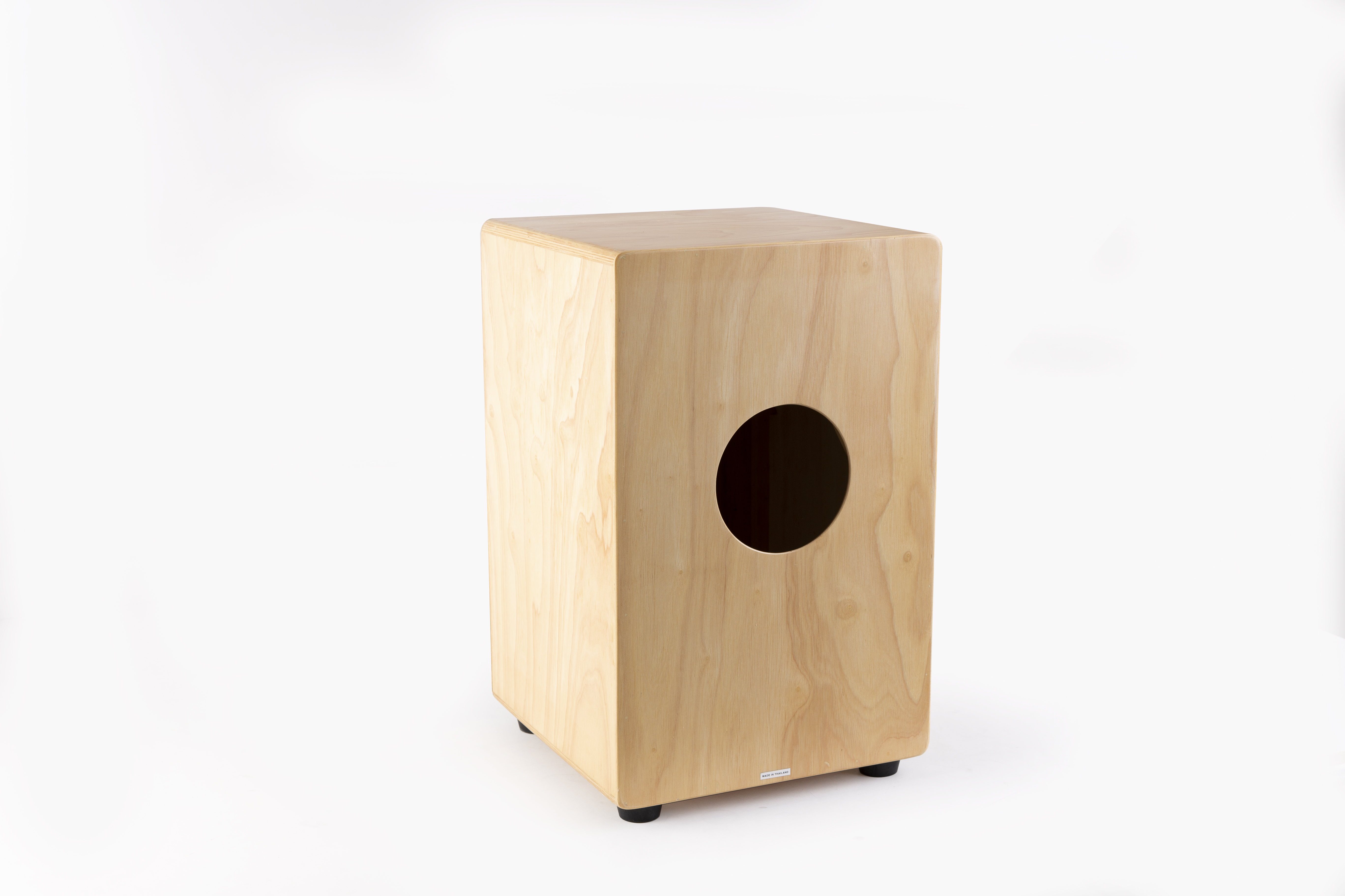 Primero Pro Box Cajon with fixed snare, front plate in Zebrano Artisan Finish and Rubber Wood Body