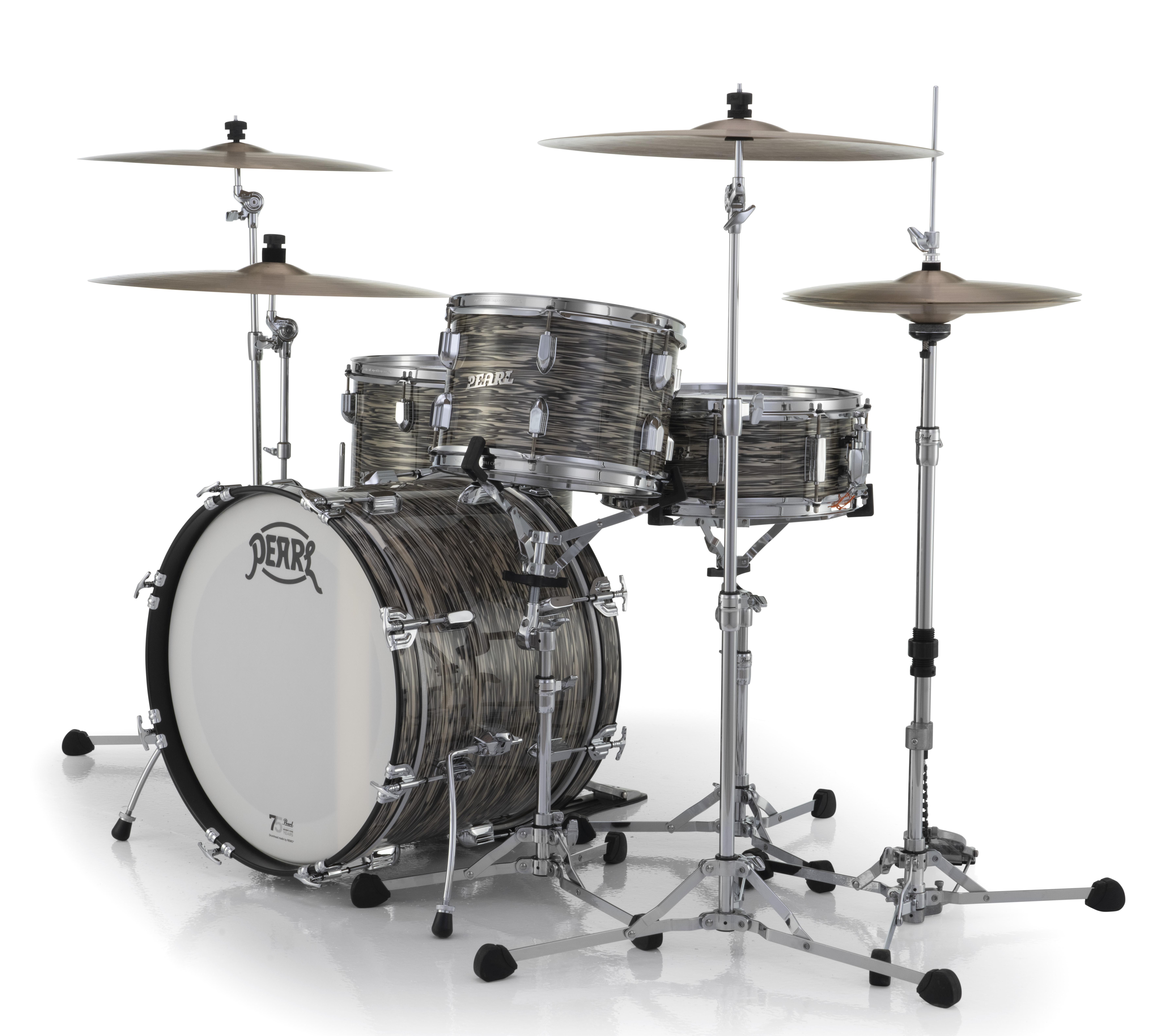 Pearls originale skriftemblem og basstrommellogo legger til en elegant touch til trommesettet, mens de valgfrie Ripple-finishene gir en ekstra dimensjon av stil og estetikk.
