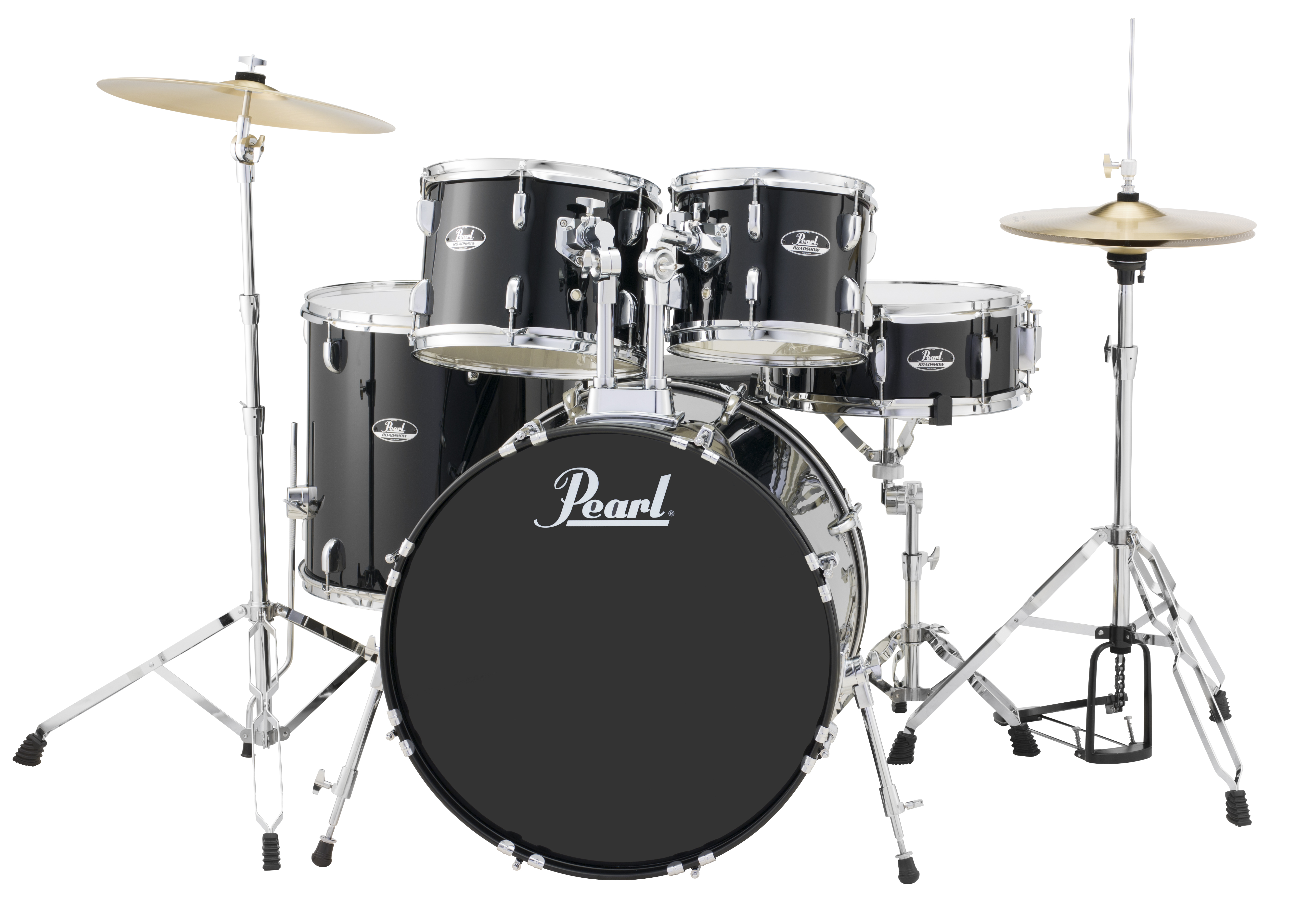 Pearl Roadshow 5 pc kit with HW and Cymbal | Jet Black 1008T/1209T/1616F/2216B/1455S