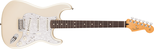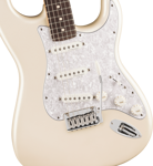 Player II Modified Stratocaster er en klassisk gitar med den moderne spilleren i tankene. Alt ved halsen er laget for rask og flytende spillbarhet, fra den moderne "C"-profilen med silkematt urethan-finish på baksiden til det komfortable gripebrettet med 9,5" radius i rosentre eller én del lønn, med mykt avrundede kanter og 22 medium jumbo bånd.