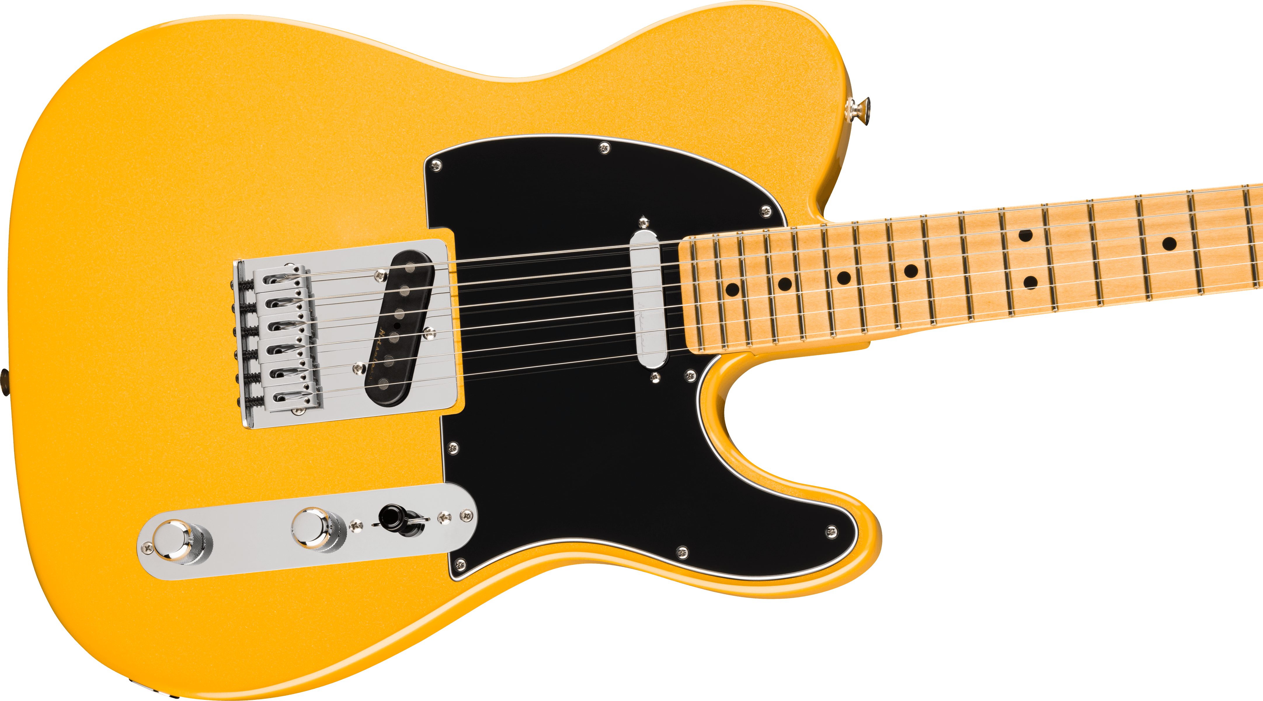 Player II noiseless-pickupene leverer den klassiske Tele®-twangen og biten uten uønsket støy, og push/pull-bryteren på tonekontrollen gir enda større tonal fleksibilitet ved å endre pickup-koblingen fra parallell til serie for fyldigere toner.