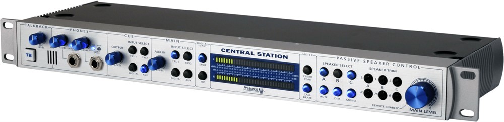 PreSonus Central Station PLUS er en profesjonell monitorkontroller i 1U rackformat med audiophile kvalitet takket være en passiv signalvei uten op-forsterkere. Dette sikrer en transparent og upåvirket lydgjengivelse uten farging eller støy. Enheten gir deg kontroll over tre analoge stereokilder og én digital kilde (S/PDIF coax og optisk, 24-bit/192 kHz), og lar deg enkelt veksle mellom tre par høyttalere med individuelle trimkontroller.