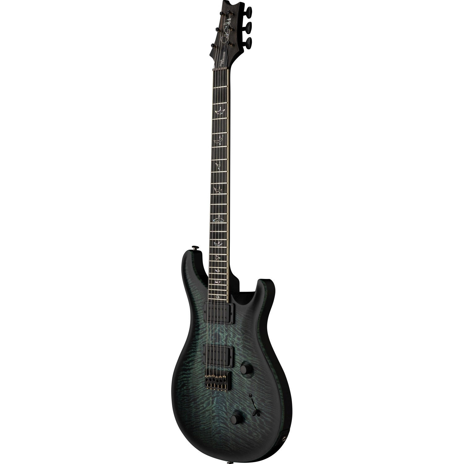 Mark Holcomb, kjent for sin banbrytende stil sammen med bandet Periphery, har i samarbeid med PRS utviklet en signaturmodell designet for allsidighet og kraft. Gitaren har en kropp i mahogny med en Violin-væld topp i mango-trær, en lönnhals med 25,5" skala og en greppbräda i ebenholtz som har en 20" radie. Alt designet for spilbarhet og presisjon. Valget av mikrofoner har falt på Marks egne Seymour Duncan signaturmikrofoner Scarlet og Scourge, som leverer et stramt lavt register med trykk som samtidig artikulerer tonene krystallklart, noe som gjør det enkelt å spille avanserte akkorder også med standardstemning, Drop-C. Med 5-veis switch kan man bytte mellom de ulike konfigurasjonene som de to humbucker-mikrofonene tilbyr: begge mikrofonene separat eller sammen, samt position 2 og 4 som gir split coil-muligheter. Den mattsvarte hardwareen matcher utrolig godt med den sleskt matte finishen, og den låter ikke bare bra, den er også pen. Enten du er en shredder, spiller country-røyk, eller utforsker jazz-improvisasjonens verden, har denne gitarten det du trenger... og viktigst av alt, den er morsom å spille på. Kropp i mahogni Fiolinskåret topp i mango-tre Lønnehals Satengfinish Ibenholt gripebrett Set Neck halsfeste 24 bånd, 25,5" skala 20" radius 4,28 cm bredde ved oversadelen Mark Holcomb halsprofil PRS Plate Style bro - string through PRS fase III låsemekanisme med PRS vingeknott Mark Holcomb Seymour Duncan Signature Scourge (bro) og Scarlett (hals) humbuckere Volum- og tonekontroller 5-veis pickupbryter PRS-etui DROP C-stemming C, G, C, F, A, D