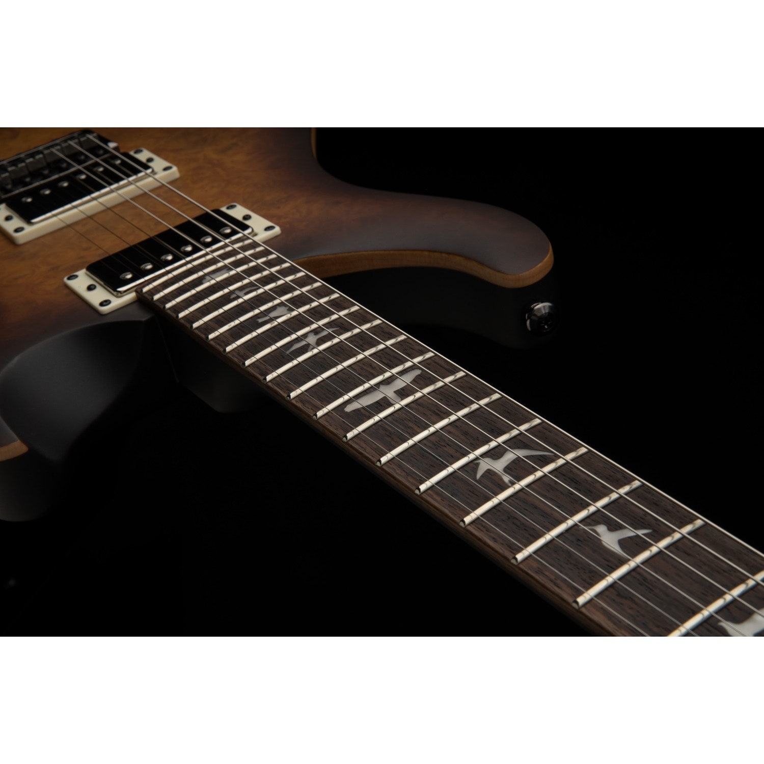 Gripebrettet i rosentre har 22 bånd, 10" radius og PRS sine karakteristiske Bird-innlegg. Halskonstruksjonen gir en komfortabel spillfølelse med god balanse mellom akkordspill og solospill.