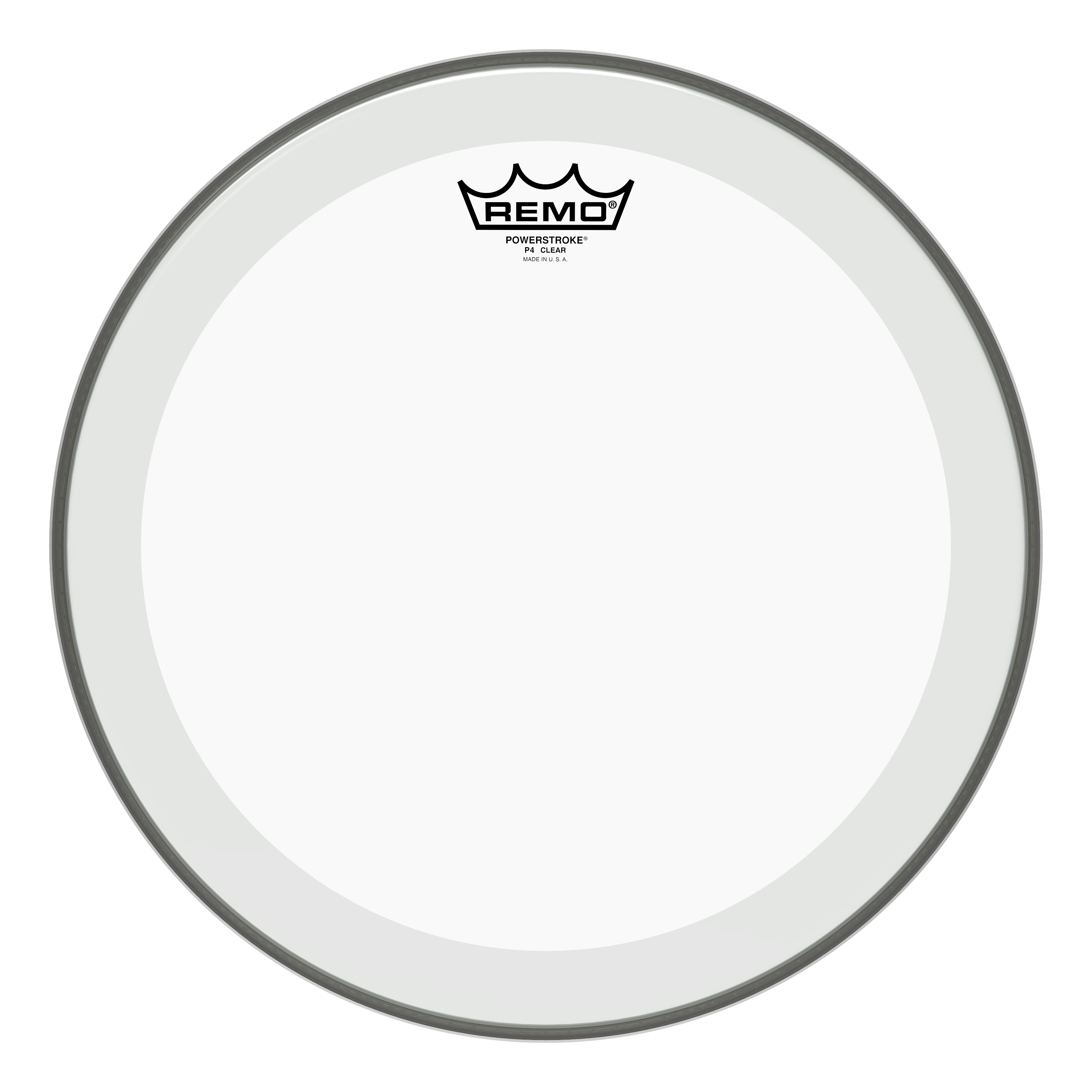 The Powerstroke® P4 Clear drumheads feature focused low-end tones with controlled sustain, well defined attack and increased durability. Constructed with 2-plies of 7-mil Clear film with a 3-mil inlay ring, these drumheads are ideal for hard-hitting applications or where minimal sustain is desired. Available in sizes 8" - 28".