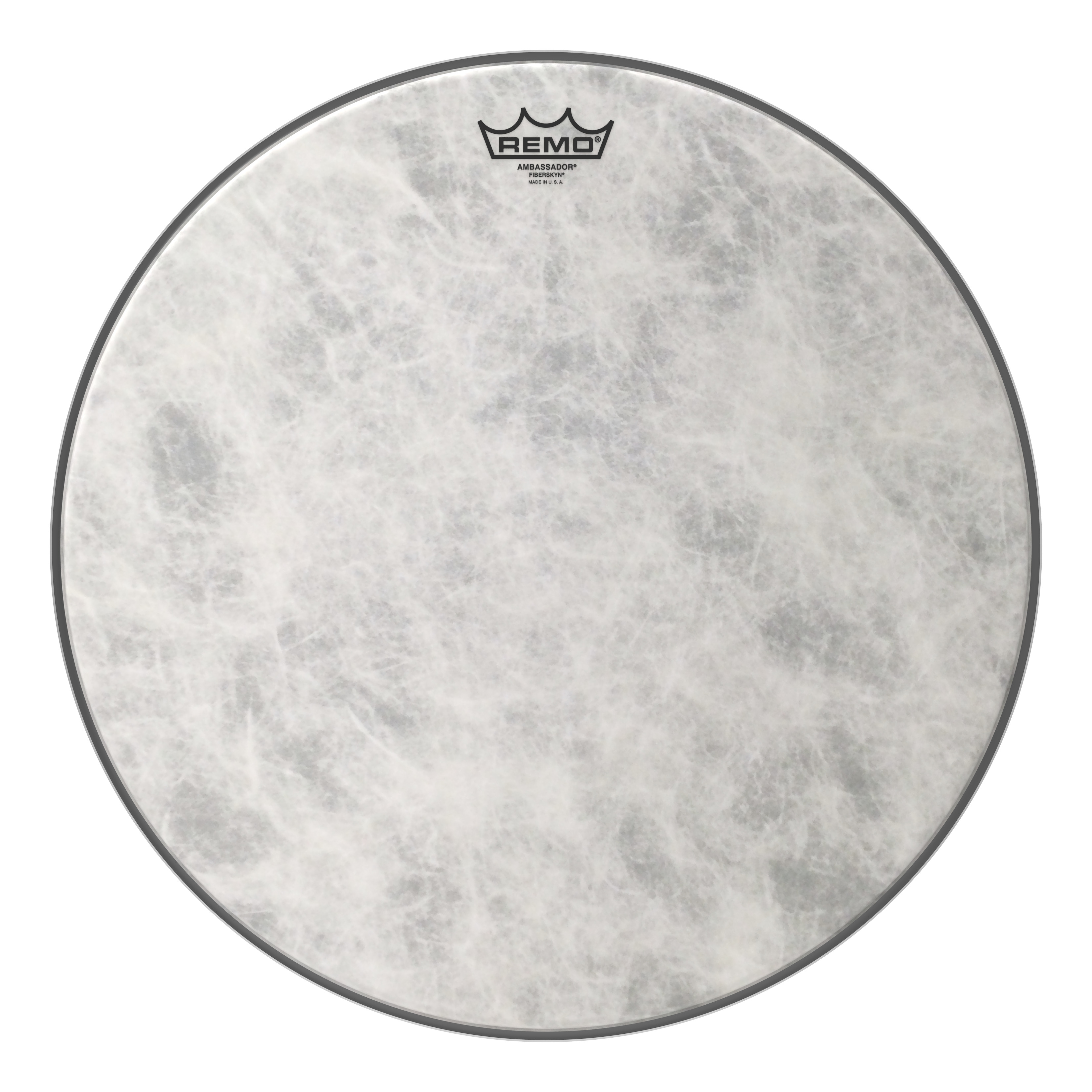 The Ambassador® Fiberskyn® drumheads feature warm, full-range tone with outstanding definition and enhanced mid and low-range resonance. Combining 1-ply of 10-mil film laminated to a 3-mil polyspun fiber, its sensitivity and soft articulation make the Ambassador® Fiberskyn® the most popular Concert Snare, Concert Bass, Concert Tom and traditional Field drum drumhead in the world. Ideal for playing with sticks, brushes and mallets in all Concert and Marching Percussion applications, and highly durable for outdoor use. Available in sizes 6" - 40".