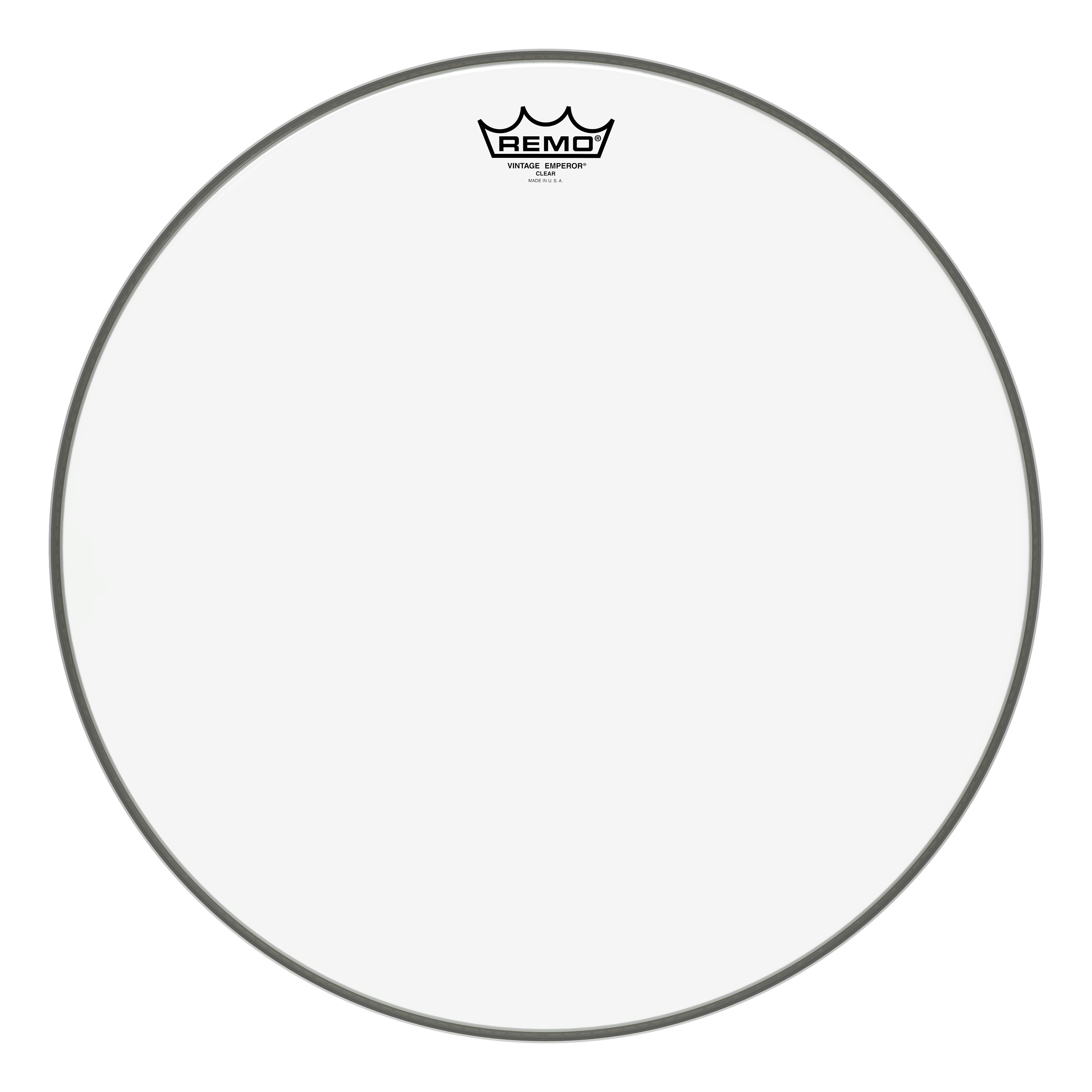 Emperor® Vintage Clear drumheads feature enhanced mid and low-range frequencies with outstanding projection and maximum durability. Constructed with 2-plies of 7.5-mil Clear film, Emperor® Vintage Clear drumheads are the most durable of all Clear 2-ply drumheads in the industry. The new vintage sound with modern innovation. Available in sizes 8" - 18".