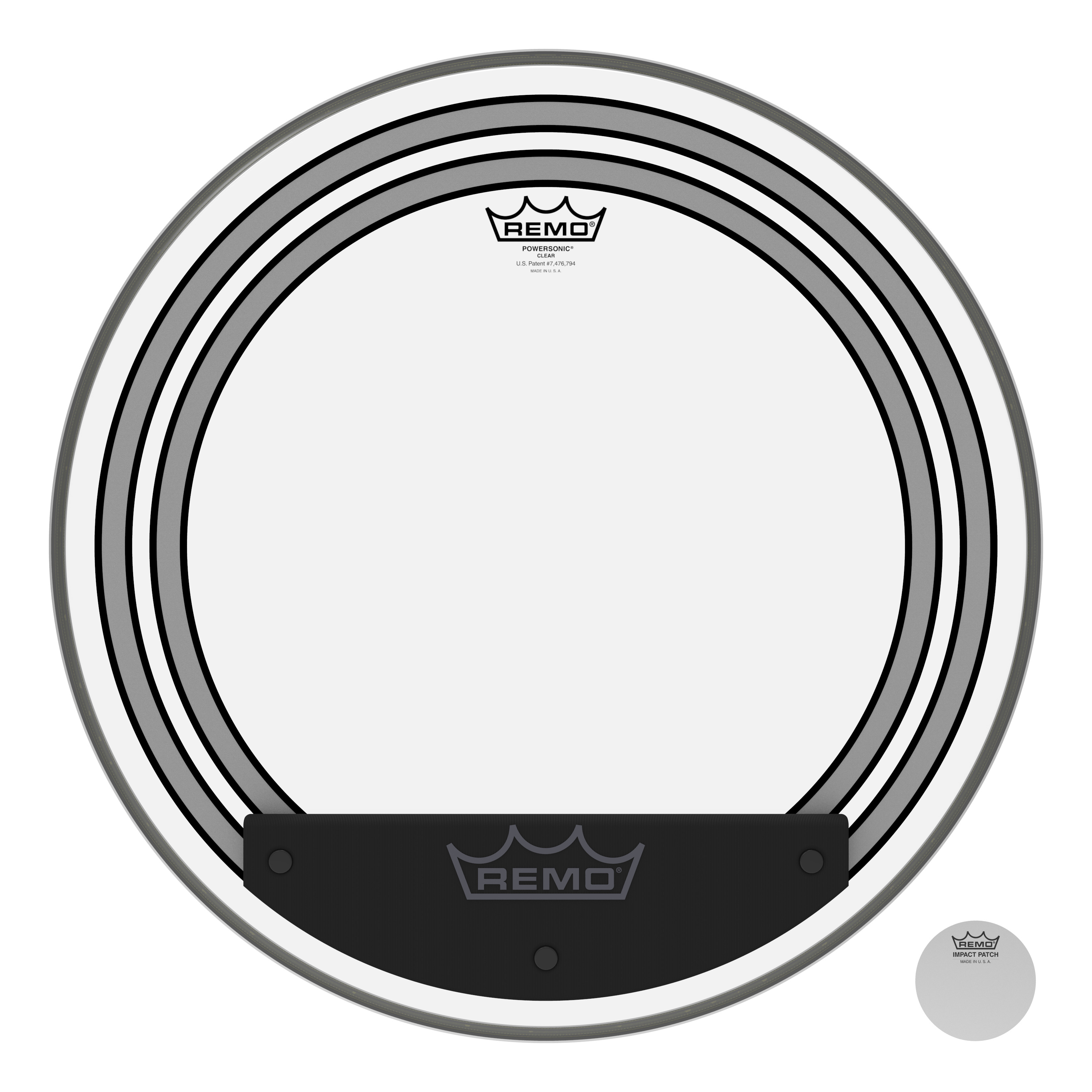 Powersonic® Clear Bass drumheads feature focused lows with increased attack. Constructed with 2-plies of 7.5-mil and 5-mil Coated film, Powersonic® Clear bass drumheads provide two specifically placed subsonic dampening rings and external snap on dampening system with impact patch for more attack. The external snap on dampening system allows you to customize you sound for different playing situations. Available is sizes 18" - 24".