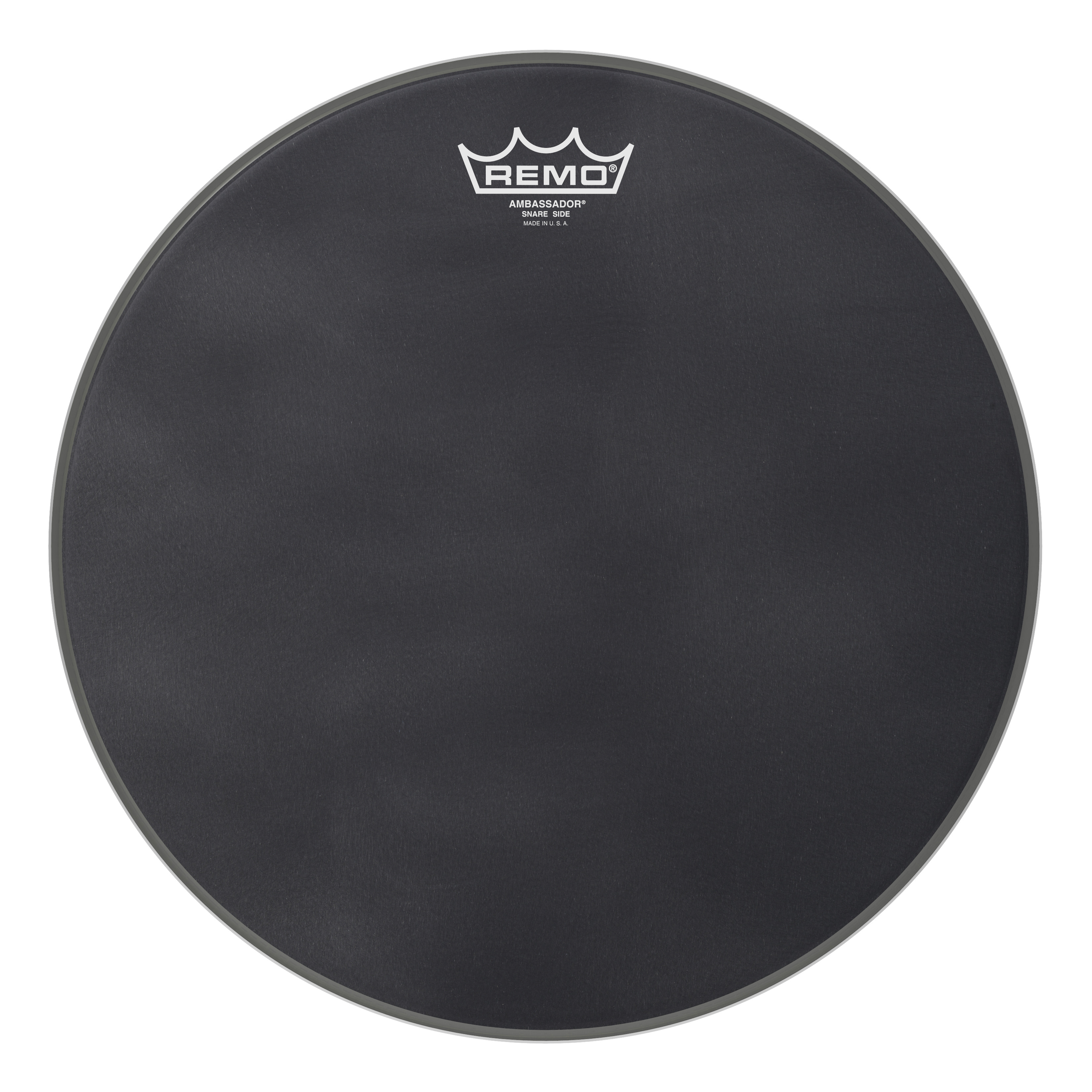 The Ambassador® Black Suede™ Snare Side drumheads feature a lightly textured Ebony® surface that produces dry, warm resonant response for Snare drums. Constructed with 1-ply of 5-mil Ebony® Suede® textured film, Ambassador® Black Suede™ Snare side drumheads provide focused dry, warm tones and overtone control with short sustain for Snare drum resonant applications. Available in sizes 13" - 14".