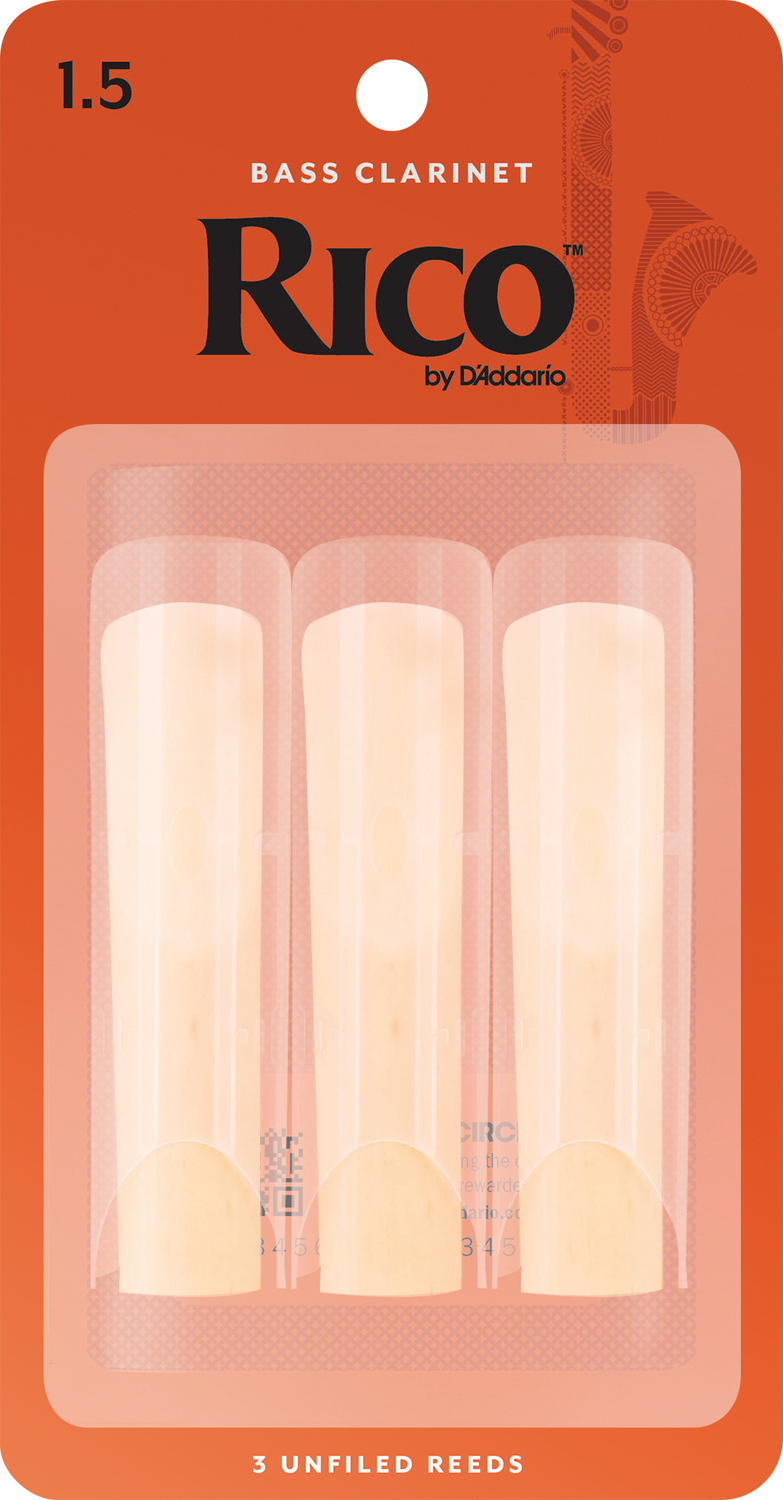 REA0315. Rør Rico Bass-Klarinett 3-pack. 1.5. Designet for å passe de fleste spillesituasjoner. Ricorørene i den oransje boksen er valgt fra den mest fleksible kvaliteten på rør. Lettblåste, en bra pris og med flere forpakningsvalg, anses de blant musikere som de rimeligste og beste kjøp på markedet.