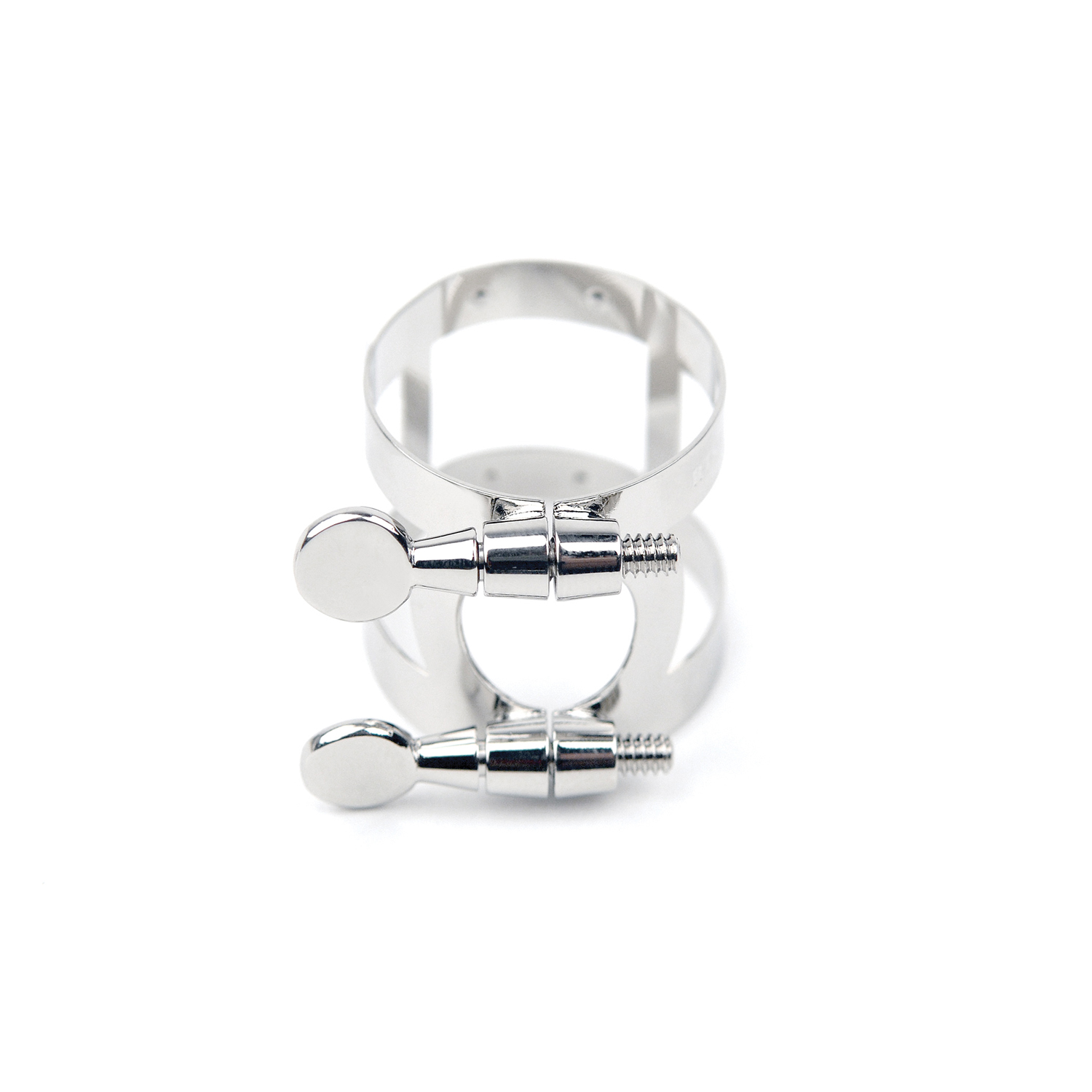 RCL1N. Ligature & Rørhette sett for Bb Klarinett. Sett som kombinerer rørholderen RCL1LN og Rørhetten RCL1C. Klassisk rørholder for Klarinett. Produsert i nickelbelagt messing i tradisjonell to-skruers utførelse. Nå med firepunktstrykk for jevnere trykk mot røret. Rørhetten er produsert i hardplast, av slitesterk som ikke sprekker og den har en gummiert myk overflate for å beskytte munnstykket. Den har innvendige spor som passer mot munnstykket.