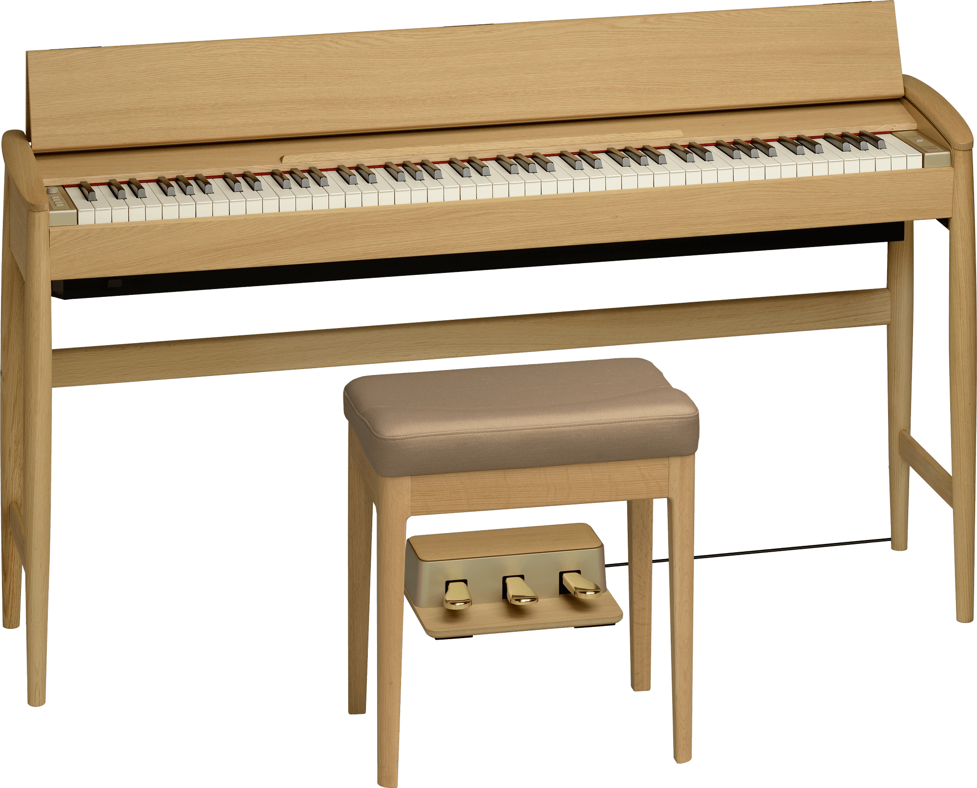 Roland Kiyola KF-10 i Pure Oak er et digitalpiano der håndverk møter teknologi. Utviklet i samarbeid med den japanske møbelprodusenten Karimoku, kombinerer det et eksklusivt, håndlaget kabinett i heltre med Rolands avanserte digitale pianoteknologi. Resultatet er et instrument som ikke bare leverer autentisk spillbarhet og naturlig pianolyd, men også et møbel som tilfører eleganse og varme til hjemmet ditt.