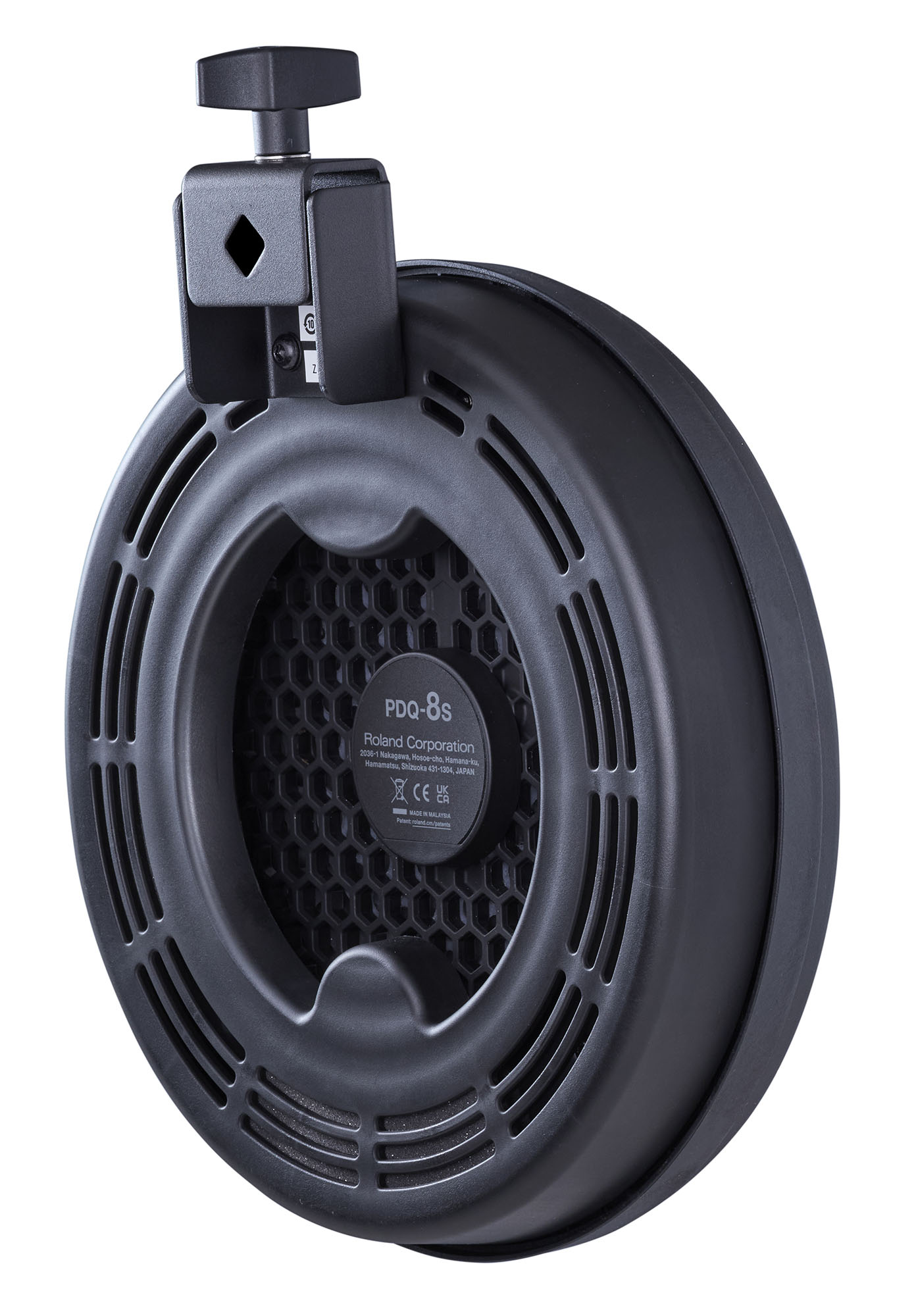 PDQ-8S skarptrommepad har et støyabsorberende bikube gummi-innlegg med meshtrommeskinn. Nøye konstruerte ventiler på undersiden av spilleflaten gjør at trykket ledes bort, noe som reduserer støyen ytterligere. Og takket være det myke dekket på trommeringen, er kantslagene stille også. Spillbarheten forblir eksepsjonell til tross for alle disse avanserte støyreduserende funksjonene, med den fantastiske stikkefølelsen og naturlige responsen du forventer fra en V-Drums-pad i toppsjiktet.