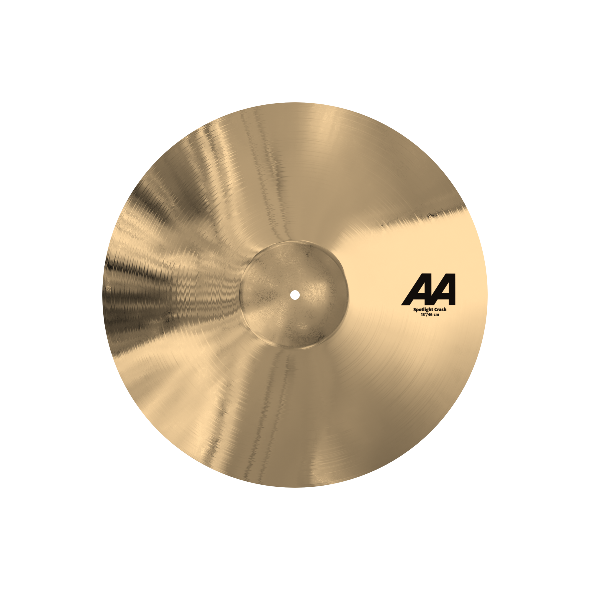 Designet i samarbeid med Todd Sucherman, er AA Spotlight Crashes laget for å dominere scenen. De leverer kraftig, gjennomtrengende lyd med et musikalsk og uttrykksfullt preg. En hamret profil og stor, rå klokke gir klarhet og fokus, mens den blanke finishen tilfører en glassaktig glans som skjærer gjennom i høyt lydnivå. Til tross for sin kraft, beholder de en smørmyk følelse og dynamisk følsomhet—som gir full kontroll, enten de er mikrofonert eller spilt akustisk. Skapt for rampelyset, briljerer disse crashene når det gjelder som mest