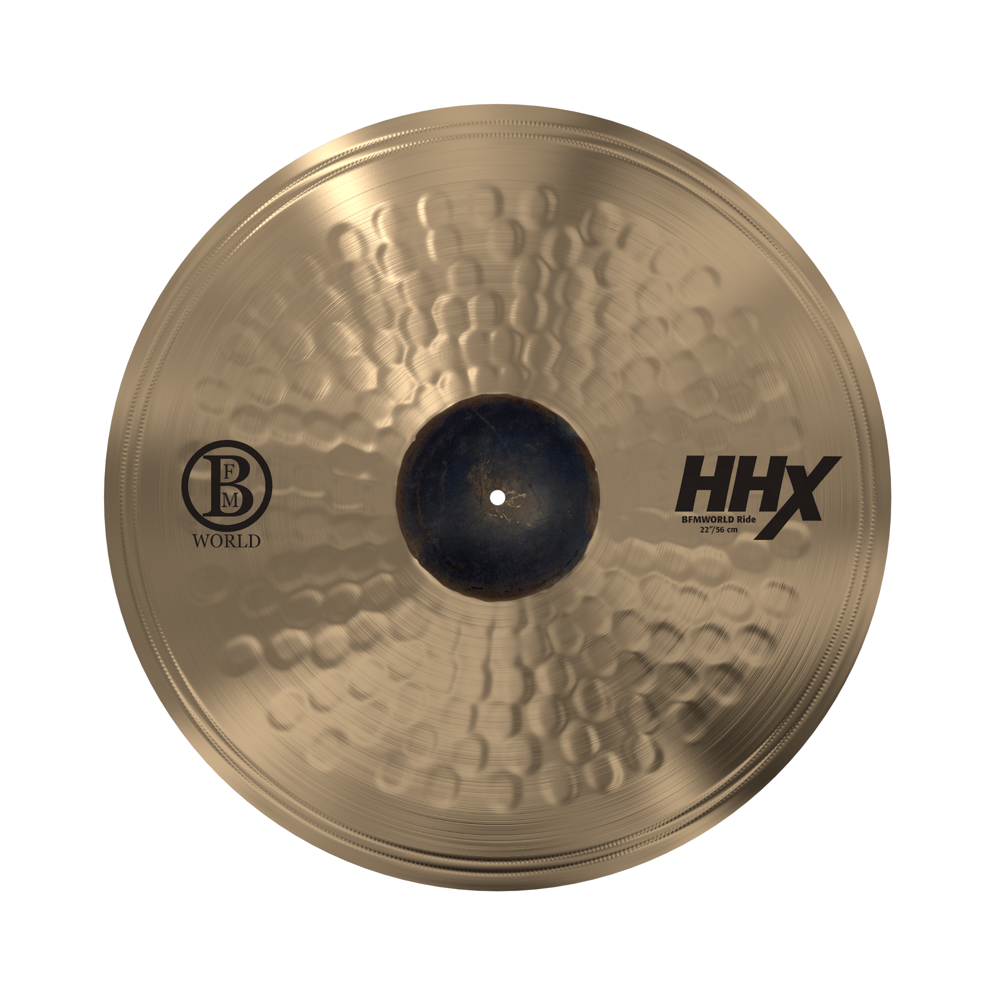 Utviklet i samarbeid med Brian Frasier-Moore og håndverkerne hos SABIAN, 22” HHX BFMWORLD Ride en middels tung ride-cymbal med en stor, klar og skjærende bjelle. HHX Tone Control-hammeringen skaper store, dype hammertegn som resulterer i en fantastisk visuell fremtoning og fantastisk tone. Designet har en "sound control edge", som senker profilen til cymbalen og legger til muligheten for crashing, noe som resulterer i en ride med tydelig tilstedeværelse og attack.