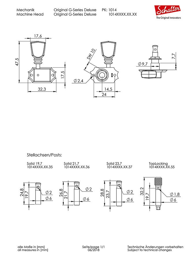 - Modell: Schaller Original G Series Machine Head 3+3 Dlx Keystone