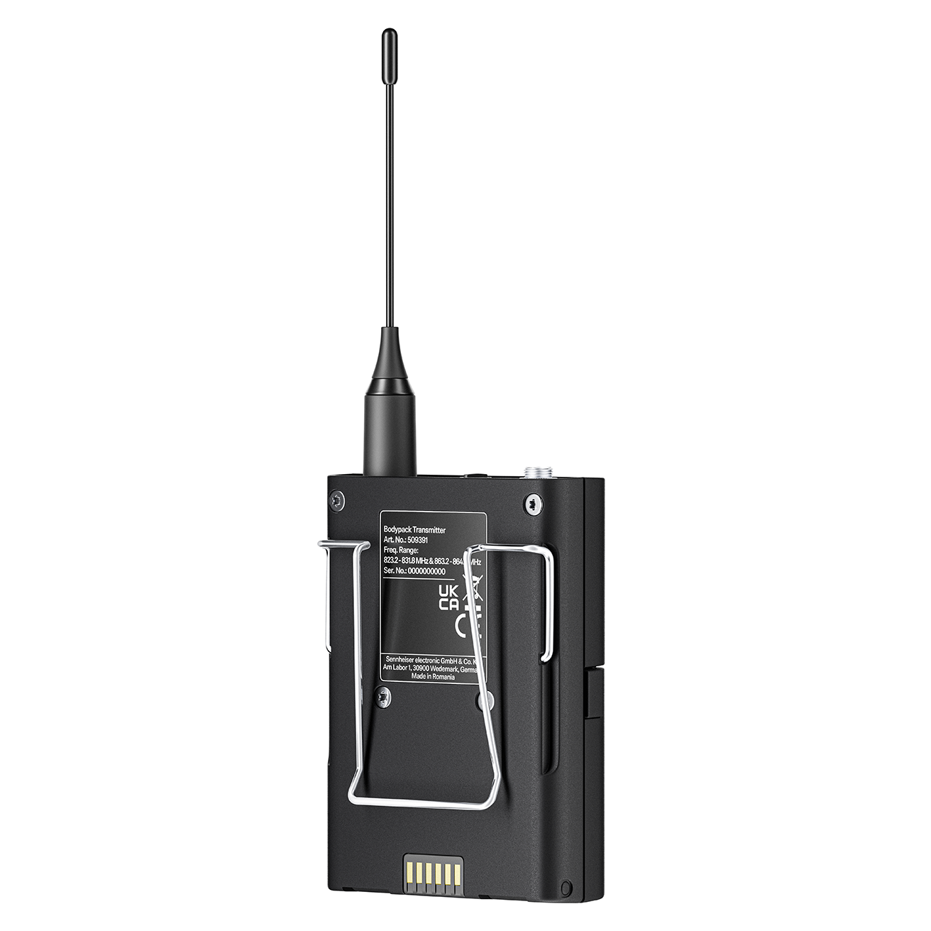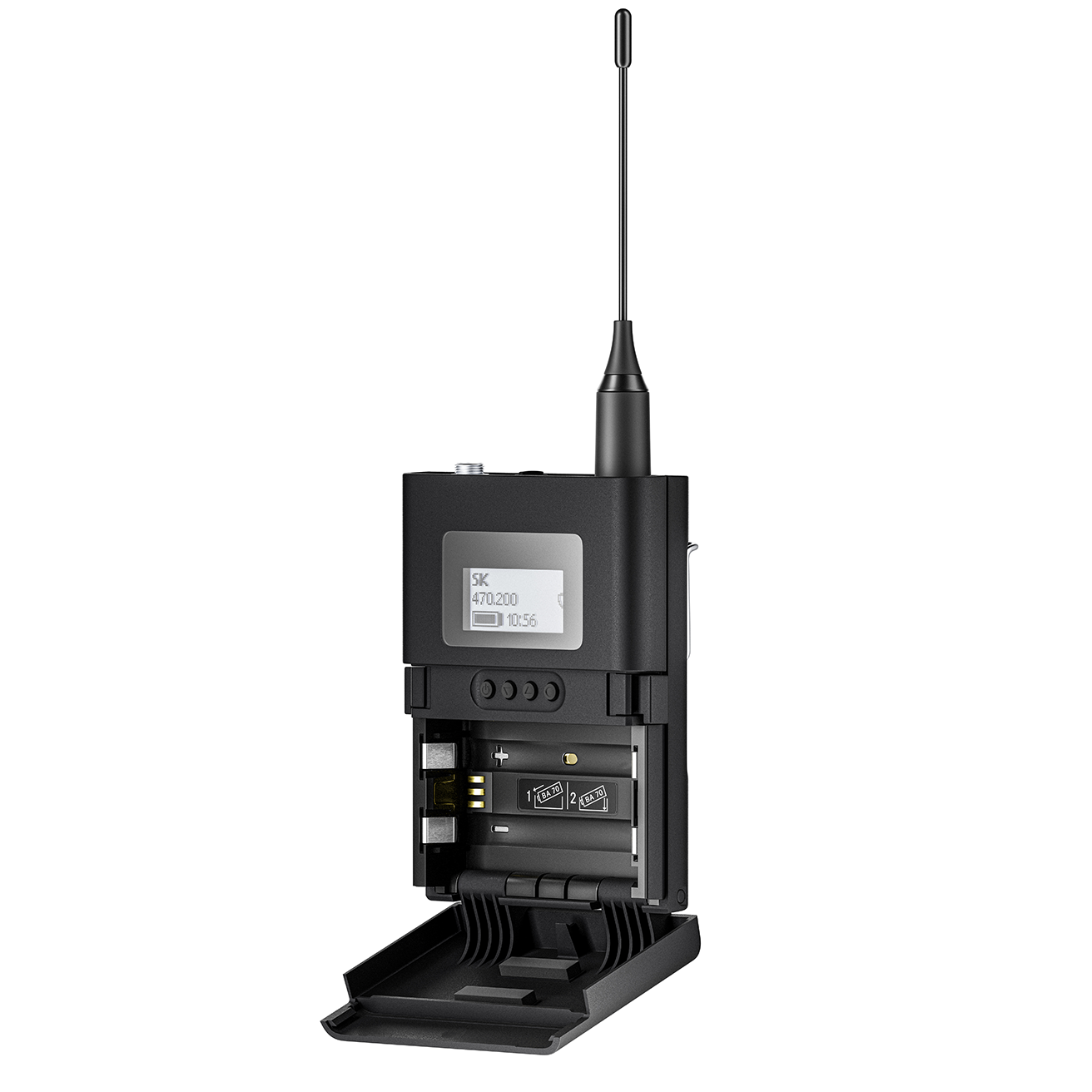 Bodypack transmitter with 3-pin connector. Includes (1) EW-DX SK 3-PIN and (2) AA batteries, frequency range: S2-10 (614.2 - 693.8 MHz)