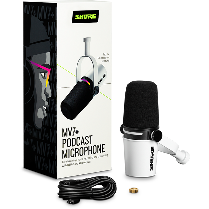 MV7+ Podcast Microphone er en dynamisk mikrofon bygget for kresne podcastere, streamere og musikere. MV7+ har tilpassbart LED-berøringspanel og kraftige DSP-funksjoner med blant annet Denoiser, popfilter og Auto level.