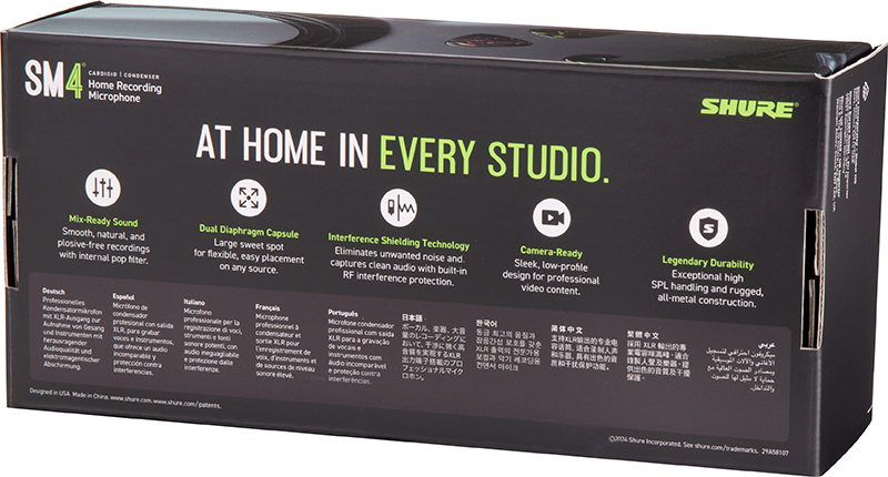Utrust hjemmestudioet ditt med den nye SM4 opptaksmikrofonen! Ta opp profesjonelle opptak av vokal og instrumenter med mikseklar lyd- og interferensbeskyttelse.