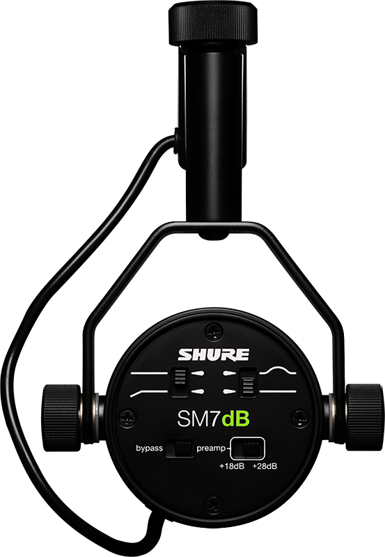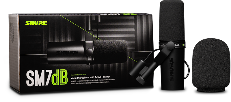 SM7dB er en kardioid dynamisk mikrofon med en innebygd forforsterker designet av Shure som gir opptil +28 dB transparent og flat forsterkning med lavt støynivå, ideell for lydkort med lavere inngangsnivå og enkle signalkjeder. SM7dB leverer varm og jevn lyd for vokal og studioapplikasjoner, den har bypass-bryter for forforsterker, justerbar bassroll-off og presence, elektromagnetisk skjerming for redusert brum, intern støtabsorbering, og en ekstern vindhette sørger for klar og konsistent lydgjengivelse.