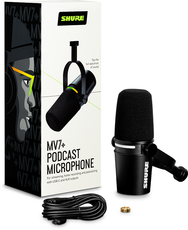 MV7+ Podcast Microphone er en dynamisk mikrofon bygget for kresne podcastere, streamere og musikere. MV7+ har tilpassbart LED-berøringspanel og kraftige DSP-funksjoner med blant annet Denoiser, popfilter og Auto level.