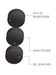 - Kontroller: Hovedvolum, pickup-blanding (mikrofonnivå), EQ (midt-konturkontroll, forbedre bass eller mellom-høye toner)