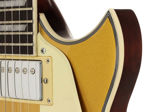 Den har kropp og hals i mahogni, topp av lønn og ibenholt gripebrett.