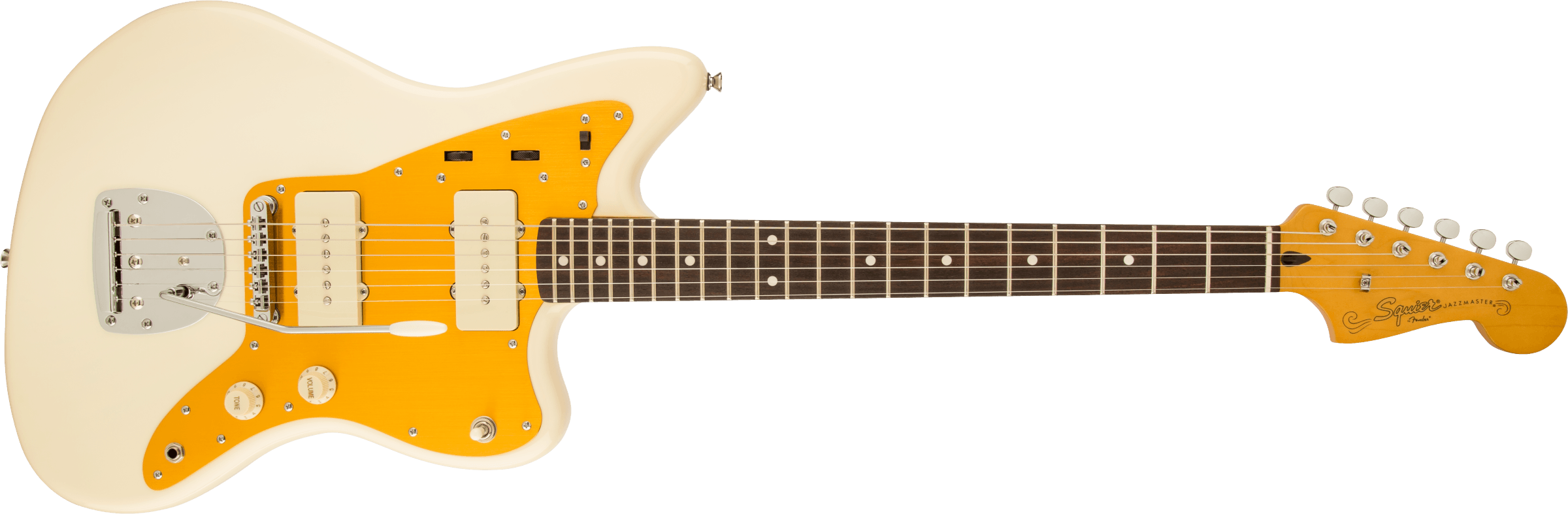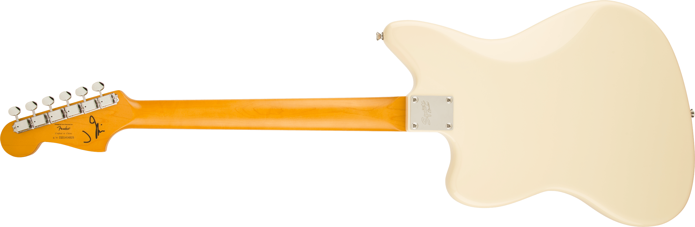 • Unique Features: J Mascis Signature on Back of Headstock, Large '60s-Style Jazzmaster Headstock, Gold and Black Squier Logo, Squier Engraved Neckplate, Aged White Plastic Parts and White Dot Position Inlays