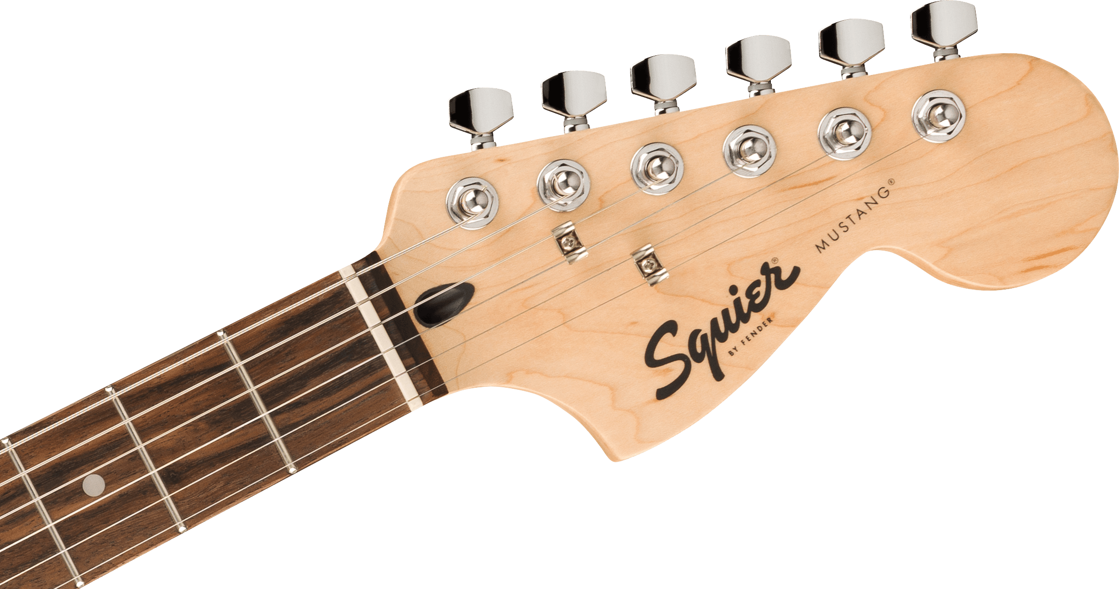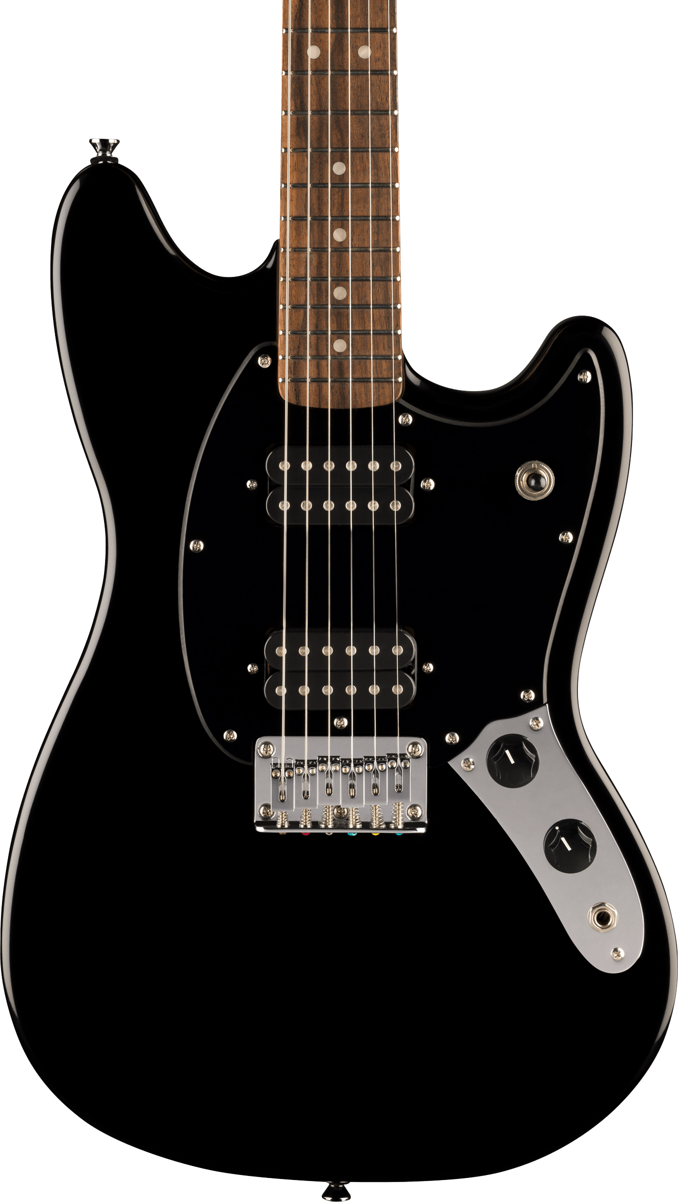 Gitaren er utstyrt med to Squier humbucker pickups som leverer en fyldig og kraftig tone med høy output. Dette gir et mer fokusert og punchy lydbilde, egnet for både rytmespill og lead.