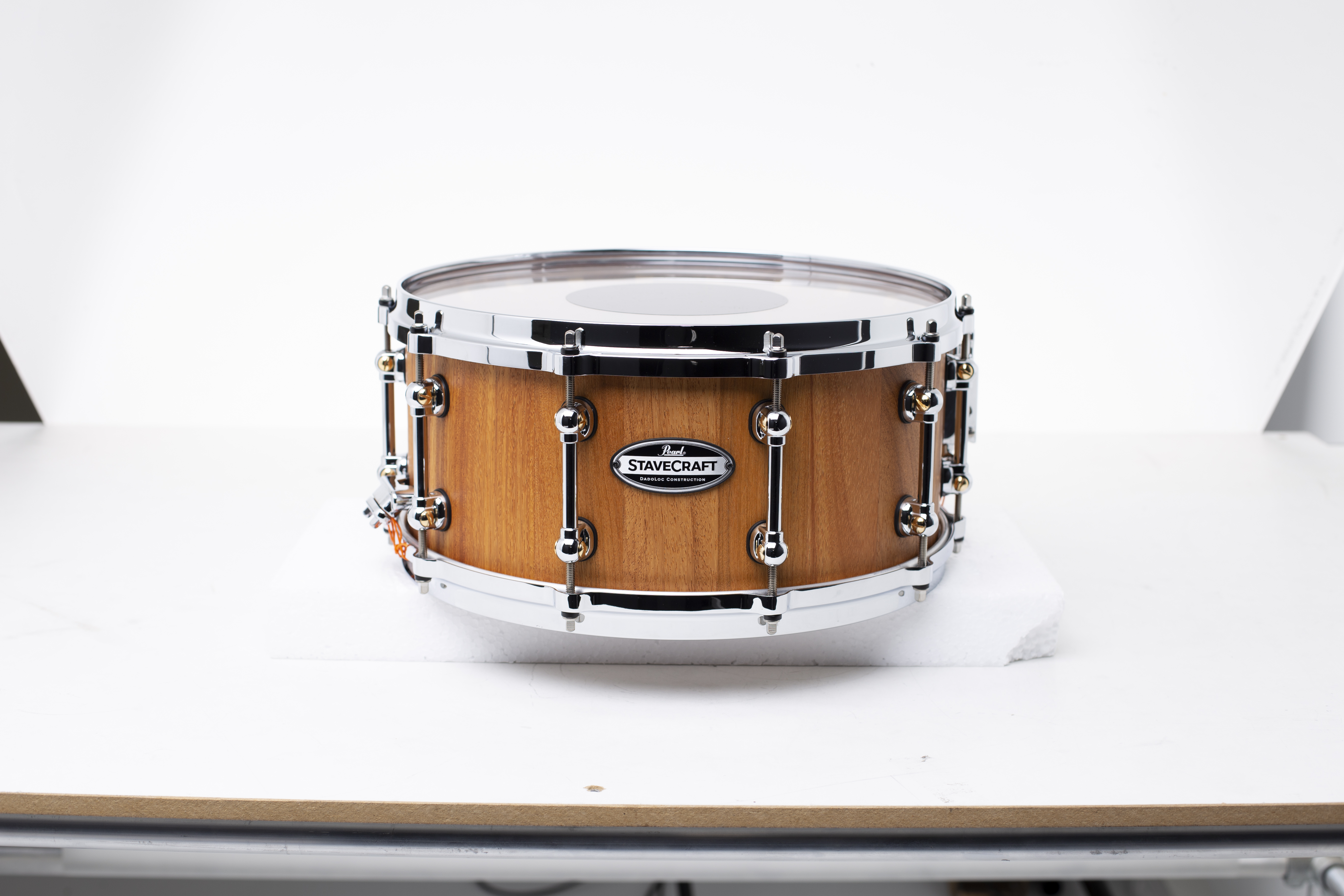 Producing sharp sonic focus and full-bodied volume for the heavy player, StaveCraft snares are a startling addition to any pro player's drumming soundscape. Each 25mm thick shell starts from two layers of meticulously beveled solid Makha exotic wood staves. Using a principal exclusive to Pearl, an added stave of Thai Oak is inserted into the center Dado channel formed by each stave. Like pieces in an intricate puzzle, this "DadoLoc" joint increases total shell strength by 50%. The shell is then lathed to a perfectly round 25mm thickness, hand lacquered, and fitted with our Swivel Tube Lugs and MasterCast die-cast counter hoops for added volume and tuning precision. Yielding solid shell tonal snare spike from a powerful mix of hardwoods, Pearl's StaveCraft snare drums are the perfect fusion of old-world workmanship and new-school performance.