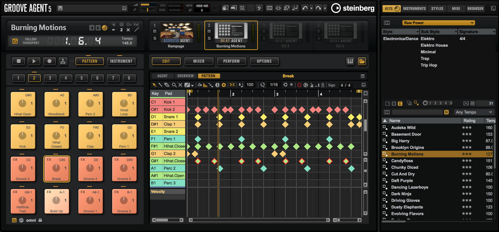 Steinberg Groove Agent 5: Rytmisk komposisjonsverktøy med elektroniske og akustiske trommer, MIDI-grooves, og bred sjangerkompatibilitet