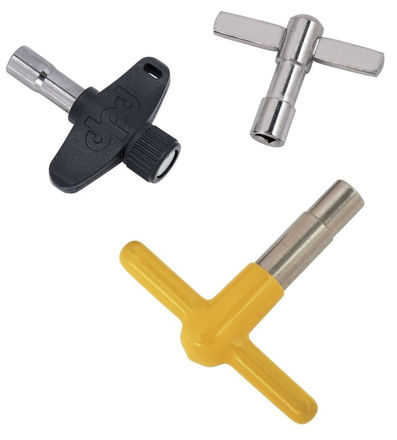 Standard drum key;For congas, bongos, timbales;Tightens all wing nuts and rack T-handles;