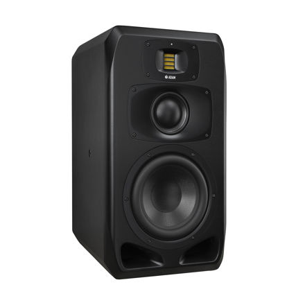 Adam aktivt monitoringsystem i sort med bånddiskant, USB-C, og 3,5" aluminiumsbasser for presis lyd