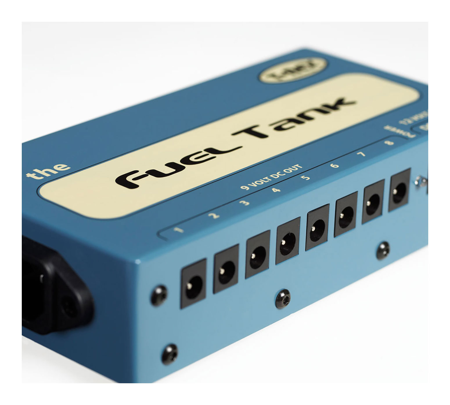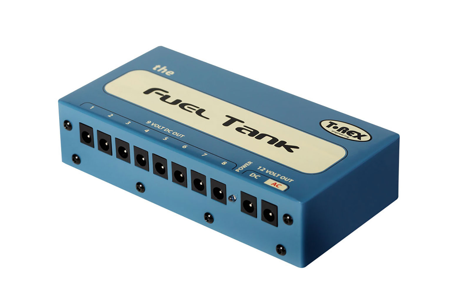 FuelTank Classic Strömförsörjning för flera pedaler 9-12V Fuel Tank serien har blivit en standard i branschen. Med smarta lösningar och pålitlig drift kan man känna sig trygg att pedalerna får den matning de behöver. This is the Classic FuelTank that has 3 different output sections: 9 volt DC, 12 volt DC and 12 volt AC. Each section is isolated. No more batteries to change. No more tangled cables to trip over. FuelTank is the perfect power supply unit for guitarists who want to focus on their performance, not their gear. Delivering 1.500 mA through ten DC plugs, FuelTank powers all your pedals – keeping you running on full power night after night. With a compact design, FuelTank fits conveniently every pedal board including the T-Rex ToneTrunk effect board. And it comes with all the cables you need to get you up and running. The dimensions of the FuelTank are: (WxHxD) 160 x 39 x 81mm (inches 6,29 x 1,53 x 3,18). FuelTank delivers 1.500 mA of reliable power. Two of the ten outputs provide 12-volt power with isolated ground – one DC and the other AC, for AC pedals.