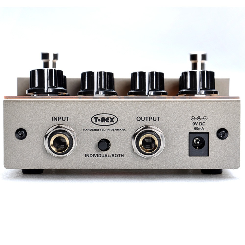 Dette er en dual-pedal med en fuzz-krets og en distortion-krets. De kan brukes hver for seg eller i såkalt dual-mode der begge kretsene jobber som én. Med Blend-kontrollen blander du enkelt inn hvor mye av den overstyrte signalen du vil ha sammen med det rene. Når blend står på fullt, kommer ingen ren signal gjennom til forsterkeren. En ny type fuzz Hos T-Rex har vi alltid elsket fuzz, men vi ønsket å ta den et sted nytt. FuzzTopia er en hybrid mellom retro fuzz og varm distortion – et møtepunkt mellom nostalgi og nye lydlandskap. Vi ønsket å lage en pedal som ikke bare gjenskaper fortiden, men åpner for nye lyder. FuzzTopia kan gå fra det mest brutale tordenvær til den søteste, mest silkemyke distortion uten å miste karakteren sin. Nøkkelen er den unike Blend-kontrollen, som er en ny funksjon på en fuzz-pedal. Den lar deg mikse rent og overstyrt signal for dynamisk tonesculpting — fra subtil crunch til full kaos. FuzzTopia oppfører seg som de originale germanium-fuzz-pedalene, mens distortionsiden gir varme og klarhet. To motorer, uendelig kreativitet Hver seksjon har sine egne kontroller for Fuzz eller Distortion, Tone, Blend og Volume. De to fotbryterne opererer uavhengig av hverandre, og en bryter på baksiden lar deg koble sammen begge effektene eller kjøre dem separat — noe som gir deg full kreativ kontroll. FuzzTopia er bygget for musikere som elsker å eksperimentere. Fra punk og klassisk rock til moderne shoegaze. Tenk Hendrix, Jack White, Dinosaur Jr. Den er for dem som jakter de udefinerbare overtonene og det rå uttrykket som gjør fuzz så levende. FuzzTopia er designet og håndlaget i Danmark. En hyllest til lyden som startet med et studio­uhell på 60-tallet og som fortsatt inspirerer oss i dag.