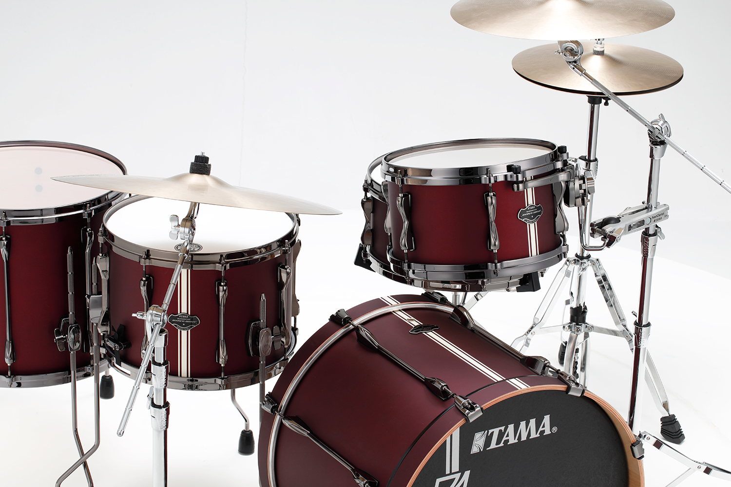 TAMA Superstar Custom Hyper-Drive DUO Drum Kit - ML40HZBN2-SGV, Satin Burgundy Vertical Stripe. 4-trommers shell-pack bestående av: 20 x 16 BD, 16 x 14 FT, 14 x 10 DUO FT/SD, 12 x 7 TT. Leveres med 1 stk. MC69 Single Tom Clamp. Tama Superstar Hyper-Drive DUO er et spennende oppsett med en kombinert skarptromme/gulv-tom på ben og med unik lyd. Oppsettet kan tenkes på flere måter One Up, One Down med Duo Snare til venstre som en sekundærskarp. Alternativt One Up, Two Down hvor Duo Snare opptrer som gulv-tom med lyd som inspirerer til nye patterns i tråd med den nyeste spillestilen personifisert av f.eks. Anika Niles, Robert Sput Searight. Som andre Superstar Hyper-Drive, har DUO lettstemte lønneshell, støpte sargringer, og tom-oppheng og hardware i luksuriøs Black Nickel. Specs: • Størrelser: 20 x 16 BD, 16 x 14 FT, 14 x 10 DUO FT/SD, 12 x 7 TT. • DUO Snare: Et 14 x 10 shell med både seidemekanikk og gulv-tom ben. • Farge: Satin Burgundy Vertical Stripe. • Shell: TT/FT: 6mm, 6-lags Maple. BD: 6mm, 8-lags Maple. • Star-Cast Mounting System: Slank tom-brakett for bra lyd og plassering. • Sargringer: Die-Cast Hoops. Fokusert lyd og lette å stemme. • Hyper-Drive Toms: Grunne lettstemte og lettplasserte trommer for optimal spillefølelse. • Claw Hooks with Rubber Spacers: Støpte stemmekroker med gummiforing til basstromma. • Sound Bridge High Tension Lugs: Minsker trykket mot shellet. • Black Nickel Hardware.