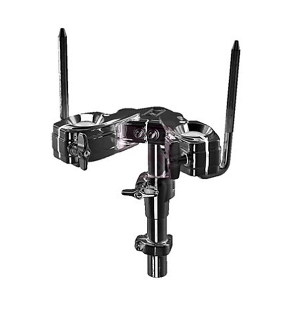 TAMA dobbelt tom-holder MTH1000BN. Black Nickel Finish Teleskopisk tom-holder for basstromme og med samme topp som på STAR tom-tom stativet. Mange justeringsalternativer som gjør trommenes posisjon lettere å justere. Tom-tomen er festet til en J-formet arm med Omni-ball som i utgangspunktet kan roteres rundt hele festet. I tillegg er de to festene for J-armene dreibare, slik at avstanden og vinkelen mellom trommene kan justeres fra alt mellom supertett til luftig bredt. MTH1000 har teleskopisk høydejustering med 25,4mm diameter på det tykkeste røret.