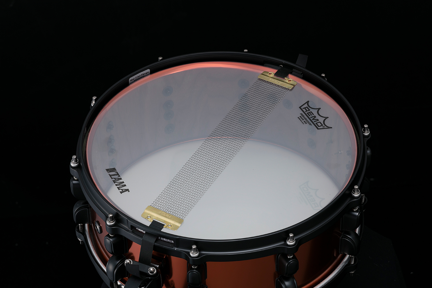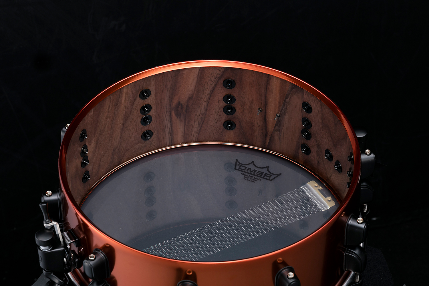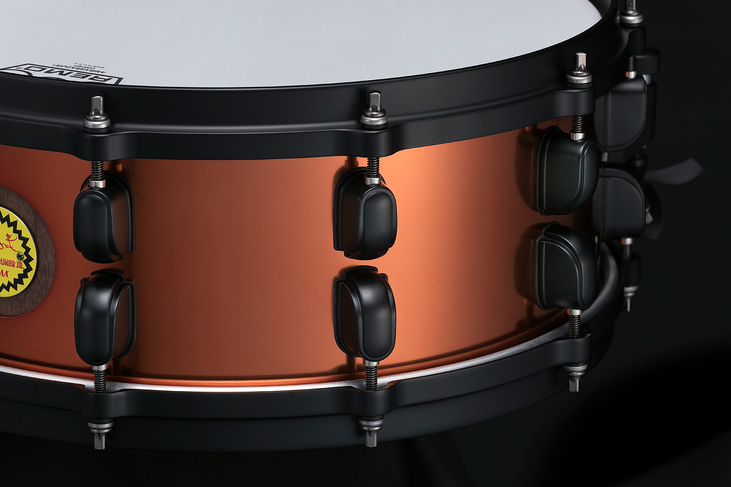 RB1455 TAMA Signature Ronald Bruner Jr. Snare Drum - RB1455. 14 x 5,5 skarptromme i Walut/Steel. Denne skarptromma ble utviklet ved hjelp av et spesielt tre- og metallhybrid konsept. Med en innervegg på 6mm, 6-lags 100% American Black Walnut og en yttervegg av 1,0mm Steel, er denne skarpen høylytt og kuttende, men allikevel sensitiv og med klar seiderespons. Den visuelt imponerende lakkerte oransje kroppen med hardware i matt svart, styrker det unike ved denne skarptromma. Specs: • Størrelse: 14 x ,5,5 . • Shell: 6mm, 6-lags American Black Walnut + 1,0mm Steel. • Farge: Metallic Orange • Sargringer: 10-hulls Die-Cast Hoops. • Seidemekanikk: MLS50A/MLS50B. • Seide: MS20RL14C. • Lugs: MSL-SCT. • Matte Black Hardware.