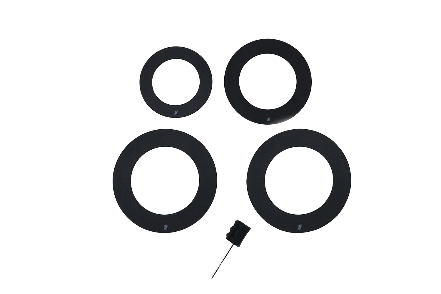 TAMA Soft Sound Ring Pack - SSRP50. Drum Sound Reducer demperinger 4-pack. TAMA Soft Sound Ringer er laget av 6mm tykk skumgummi. Dette trommetilbehøret reduserer volumet til et akustisk trommesett samtidig som den naturlige tonen i shellet opprettholdes. Soft Sound Ring er designet med et åpent senterhull og opprettholder den naturlige følelsen av å spille et akustisk trommesett. Soft Sound Rings kan kjøpes i ferdige sett eller individuelt fra 8 til 16 diameter. Inneholder 1 x 10 , 1 x 13 og 1 x 14 Half Round ringer, pluss 1 x BSQ5S Soft Sound Beater.