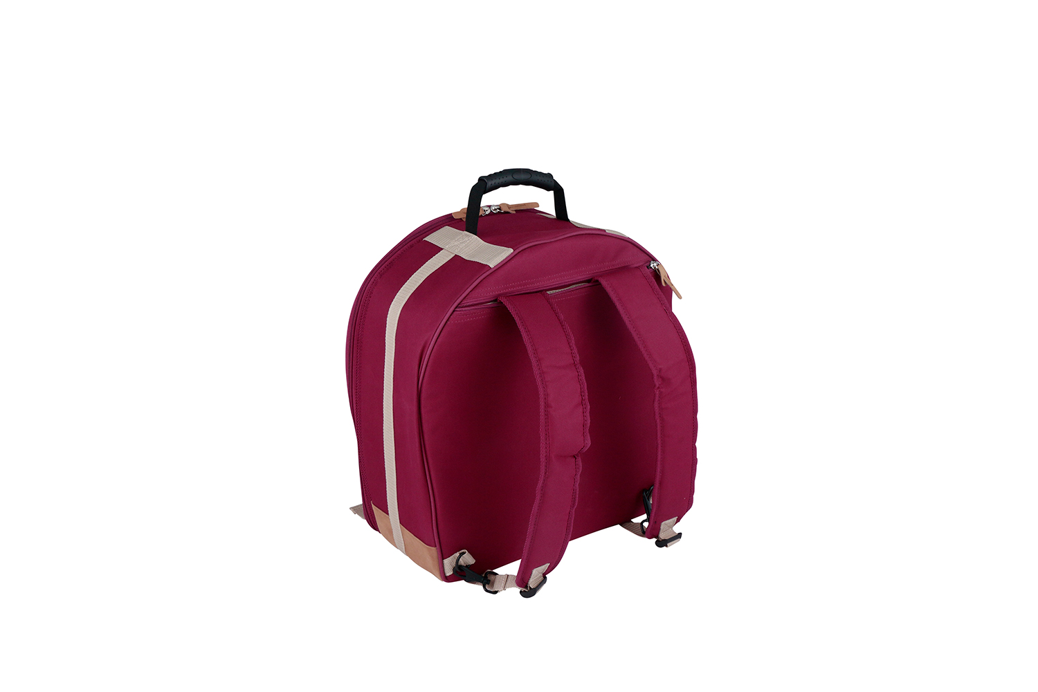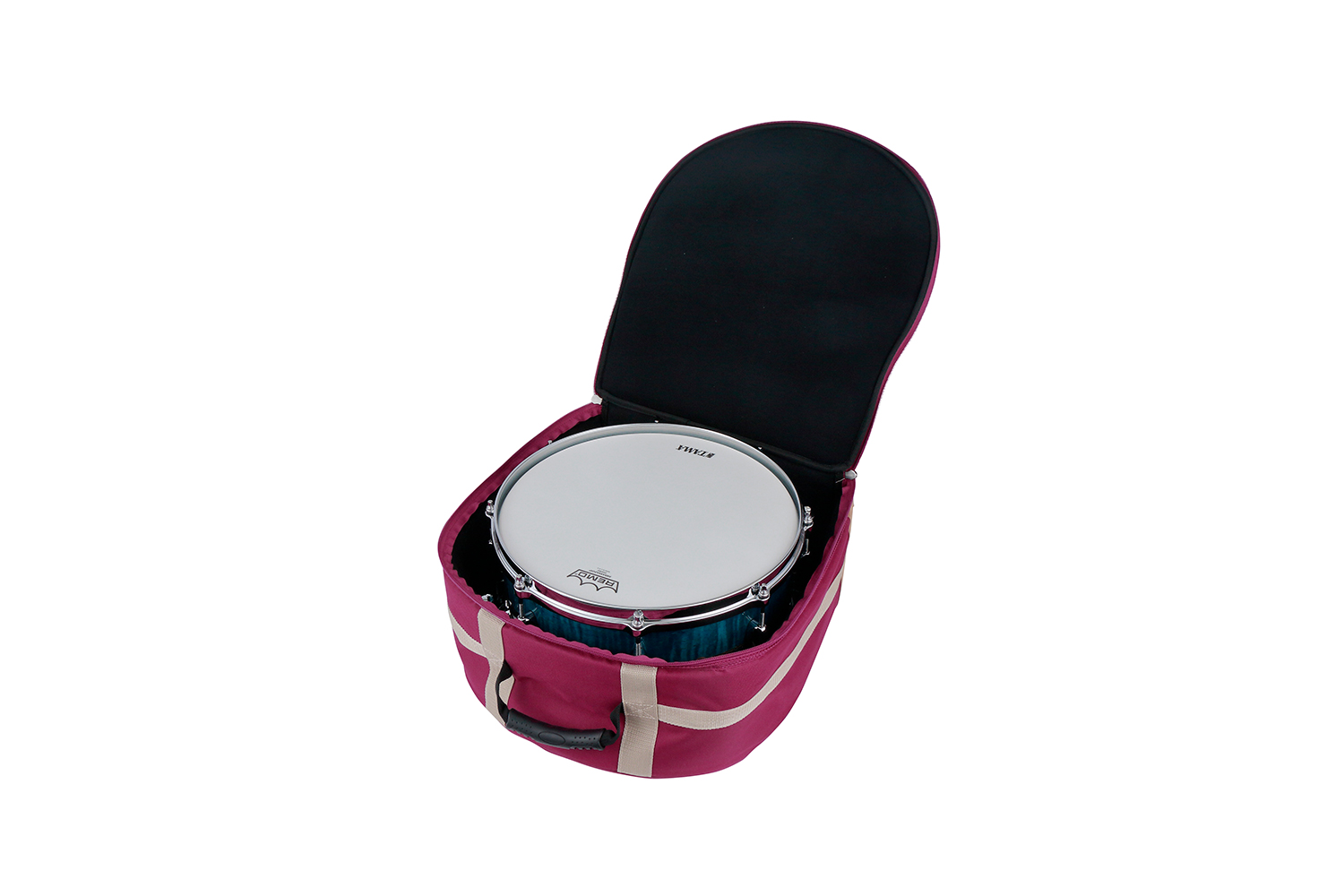 TAMA Powerpad Designer Series Snare Drum Bag TSDB1465BK. 14 x 6,5 vinrød skarptrommebag. Powerpad Designer serien består av bager i 6 forskjellige farger: Beige, Black, Wine Red, Navy Blue, Black Denim og Blue Denim. Powerpad serien trommebager er slitesterke bager som er laget for å transportere settet ditt trygt og sikkert. Disse bagene er laget med en spesiell halvhard polstring bestående av fire separate lag, der hver lag er laget av unike materialer, for å beskytte det verdifulle utstyret ditt mot skader. Den indre overflaten har et mykt flanellmateriale som forhindrer riper, mens den ytre overflaten bruker nylon med høy tetthet og vannavstøtende finish. Basstrommebagen har håndtak på toppen og i bunnen, samt på siden av bagen, for enklere bæring. Et pen, men diskret T logo er, foruten god kvalitet, det eneste som avslører slektskapet med Tama. Powerpad finnes i størrelser fra 8 til 24 , samt stikkebager, cymbalbager og stativbager.