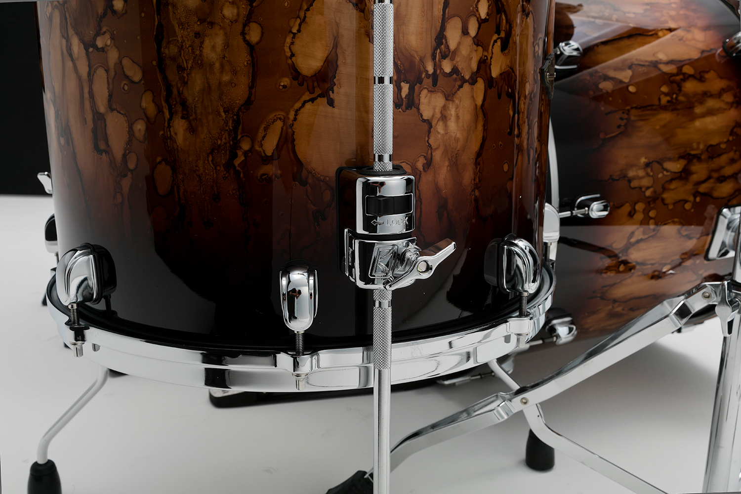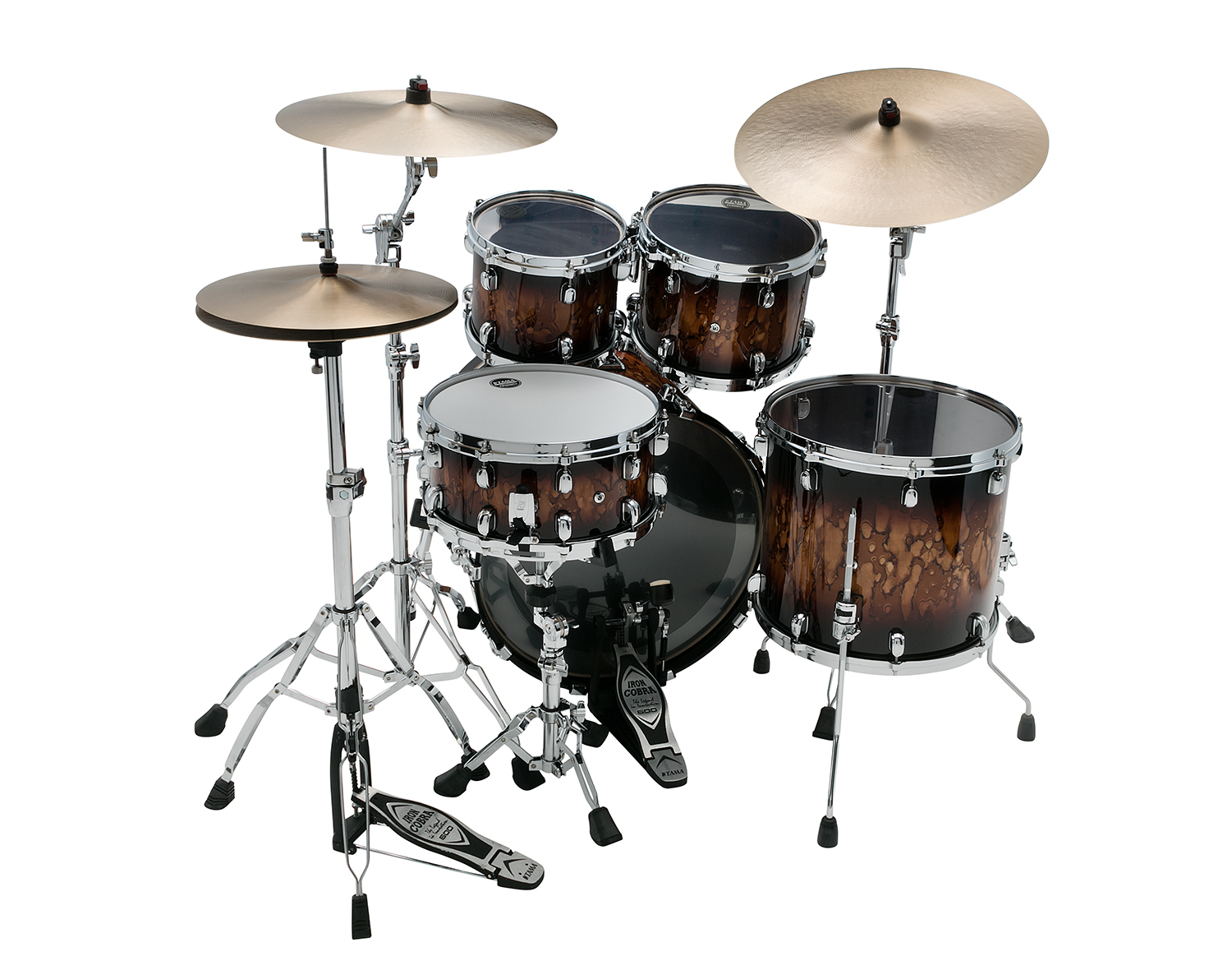 • Shell: 6mm, 4-lags Birch + 2 indre lag American Black Walnut på toms. 8mm, 5-lags Birch + 2 indre lag American Black Walnut på basstromme/skarptromme.