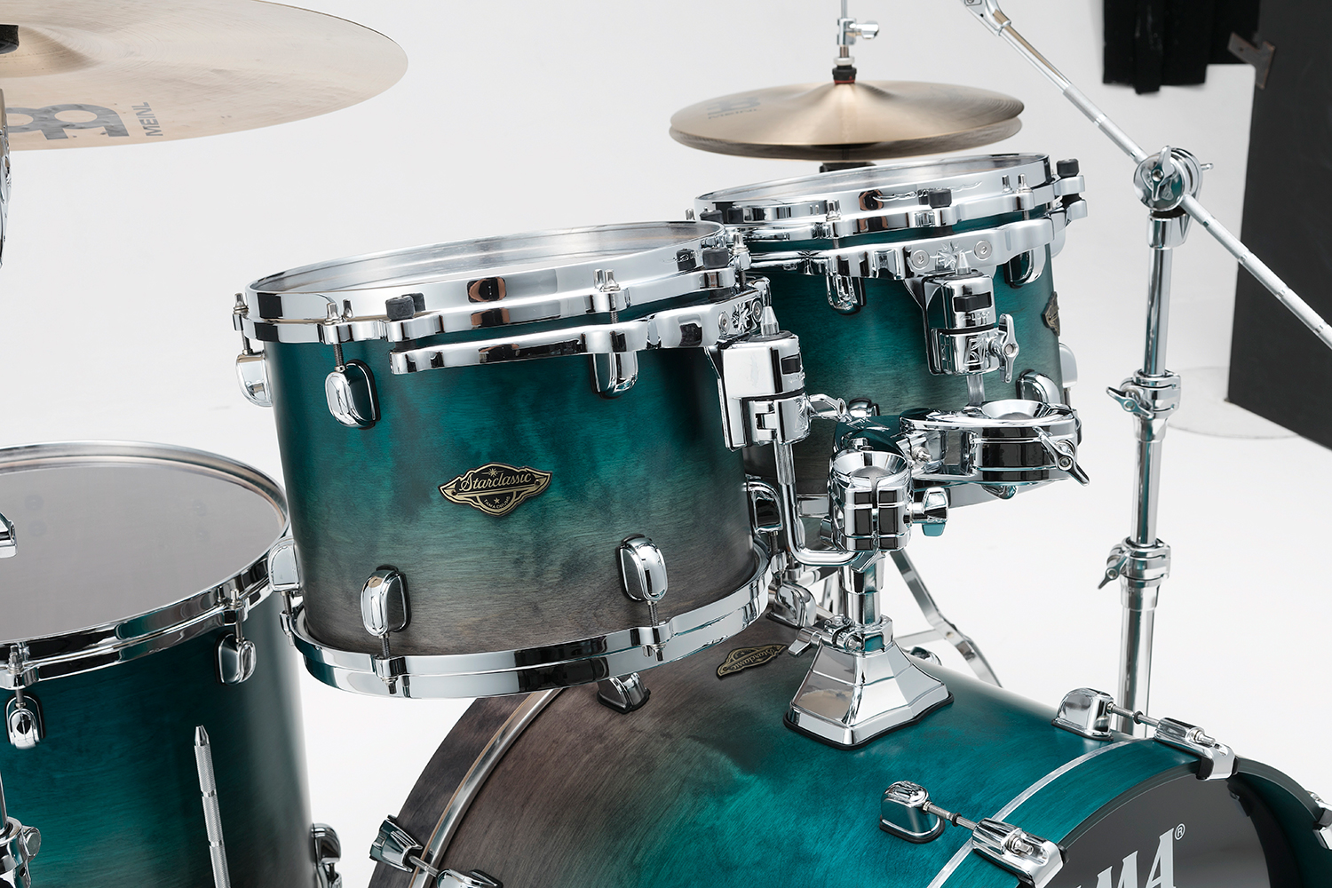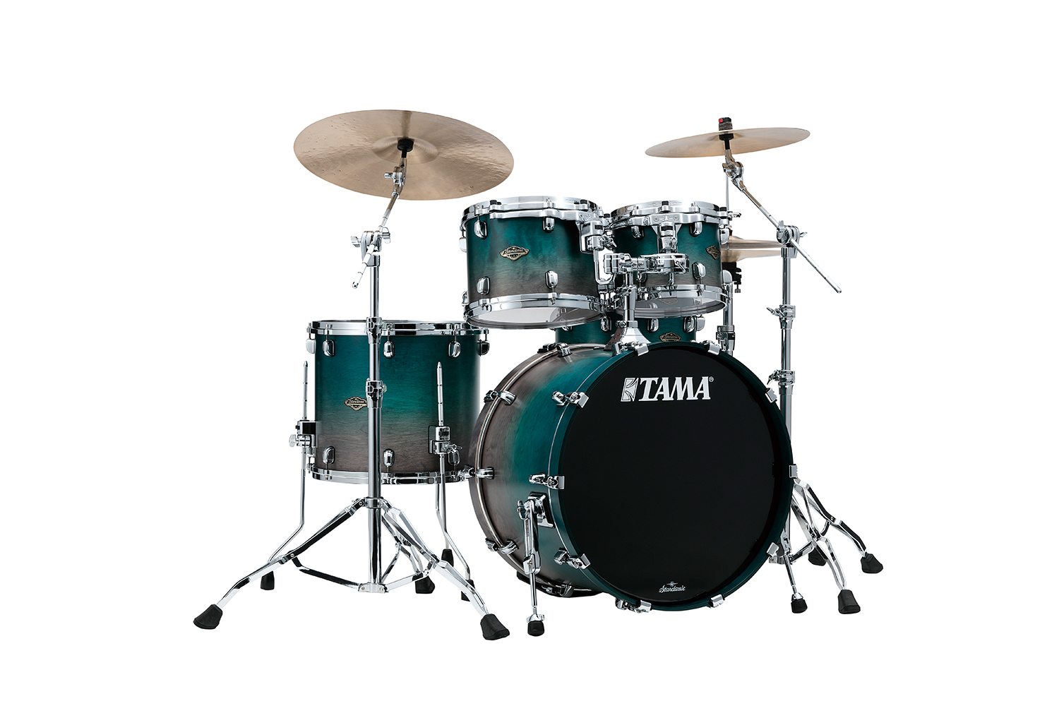 TAMA Starclassic Walnut/Birch Drum Kit WBS42S-SPF, Satin Sapphire Fade. 4-trommers shell-pack bestående av: 22 x 16 BD, 16 x 14 FT, 12 x 9 TT, 10 x 7 TT. Leveres med 2 stk. MC69 Single Tom Attachment. Walnut/Birch sett med 4 lag bjørk + 2 indre lag med valnøtt. Tama’s hybridsett kombinerer Walnut med Birch og leverer både stor fundamental tone og stabil bunn. Den tydelige og rene tonen gjør Starclassic W/B uhørt lettstemte uansett om man foretrekker høyt stemte enkeltlagsskinn, eller lavt stemte dobbeltlagsskinn. I likhet med alle Starclassic har Walnut/Birch Starclassic Lugs, Die-Cast Hoops, Star-Cast Mount med Quick-Lock tom-feste, for optimal lyd og håndtering. Starclassic W/B er helt unike, men allikevel fantastiske allround trommer. Specs: • Størrelser: 22 x 16 , 16 x 14 , 12 x 9 , 10 x 8 . • Farge: Satin Sapphire Fade. • Shell: 6mm, 4-lags Birch + 2 indre lag American Black Walnut på toms. 8mm, 5-lags Birch + 2 indre lag American Black Walnut på basstromme/skarptromme. • Star-Cast Mounting System: slank tom-brakett for bra lyd og plassering. • Sargringer: Die-Cast Hoops. • Quick-Lock tom- og gulvtombenfester. • Gulvtomben: Ben med air-pocket gummiføtter som gjør tromma flytende for maks resonans. • Basstrommeben: 2-delt med gummiforing. • Leveres med EVANS® skinn: G2 clear på toms, EQ4 på basstromme. *Visse modeller lagerføres, andre har ca. 4-5 måneders leveringstid.